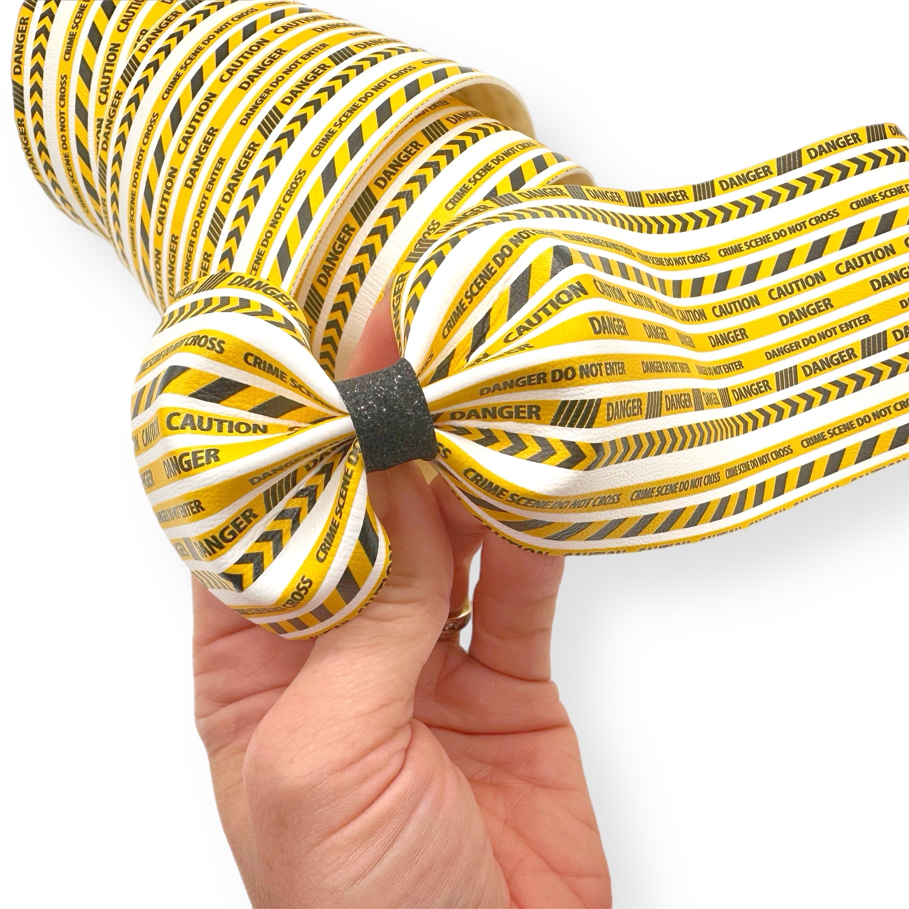 Caution Crime Scene Tape Faux Leather Mega Bow Strips