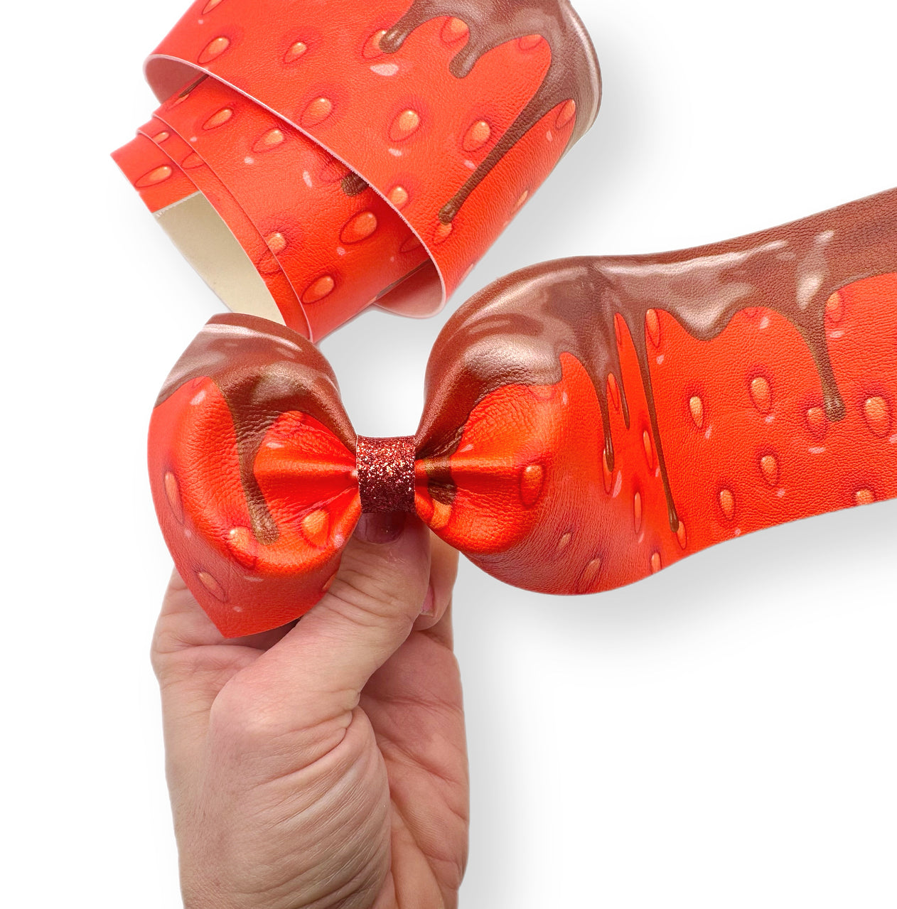 Chocolate Strawberries Faux Leather Mega Bow Strips
