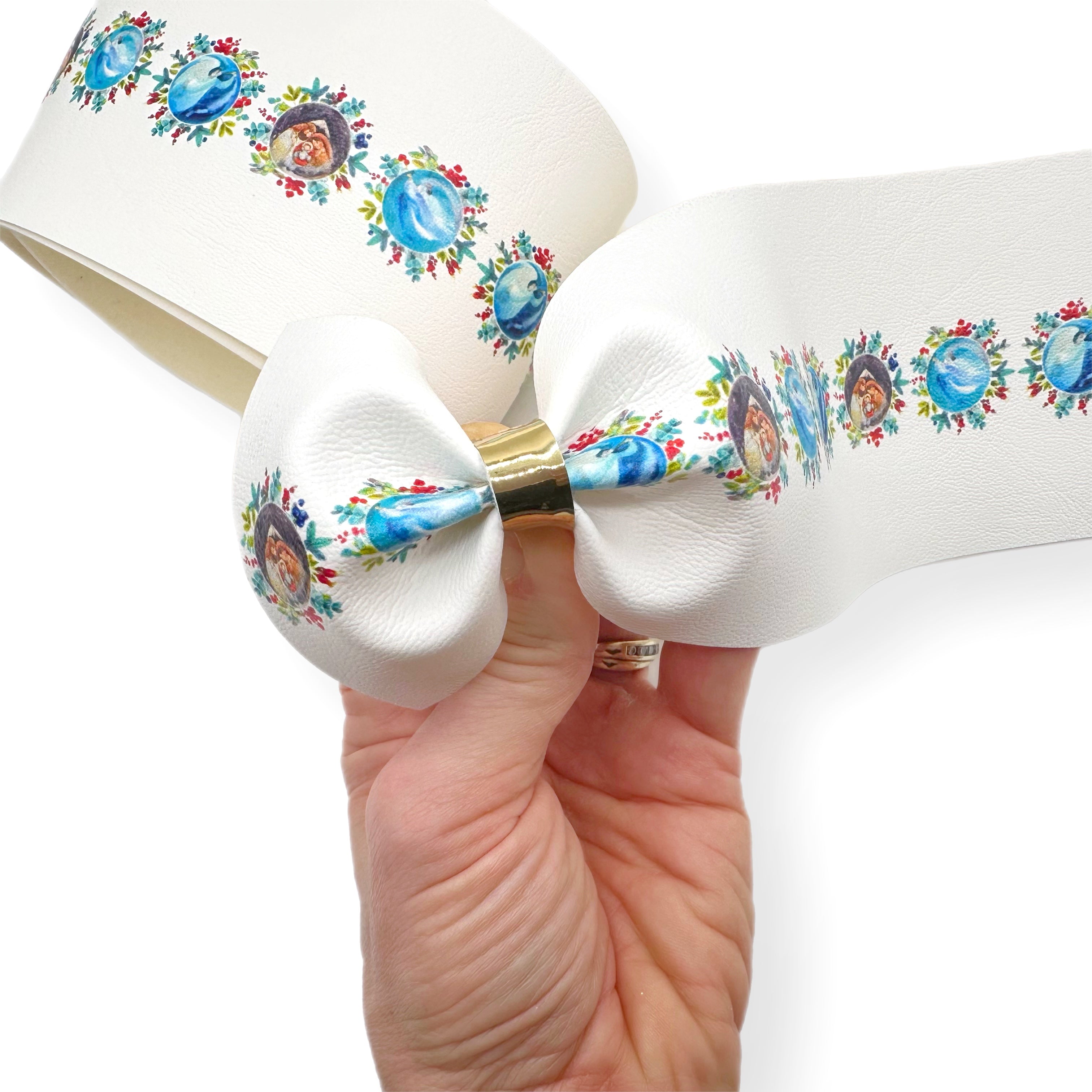 These beautiful, high quality patterned faux leather mega bow rolls are approximately 3” tall and 130cm long. Our Reach compliant faux leather rolls can be used for pinch bows or regular bows with very little wastage.