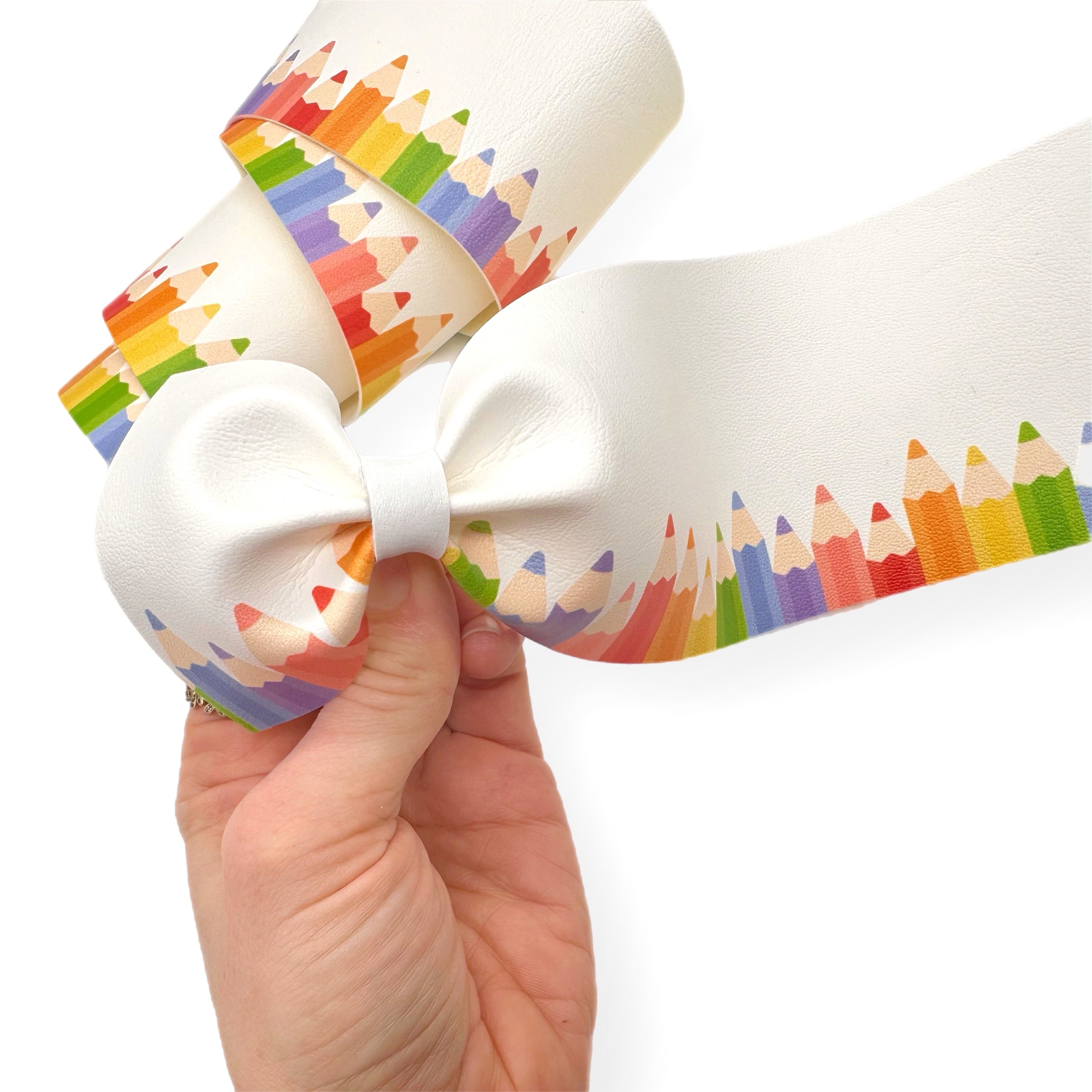 These beautiful, high quality patterned faux leather mega bow rolls are approximately 3” tall and 130cm long. Our Reach compliant faux leather rolls can be used for pinch bows or regular bows with very little wastage.