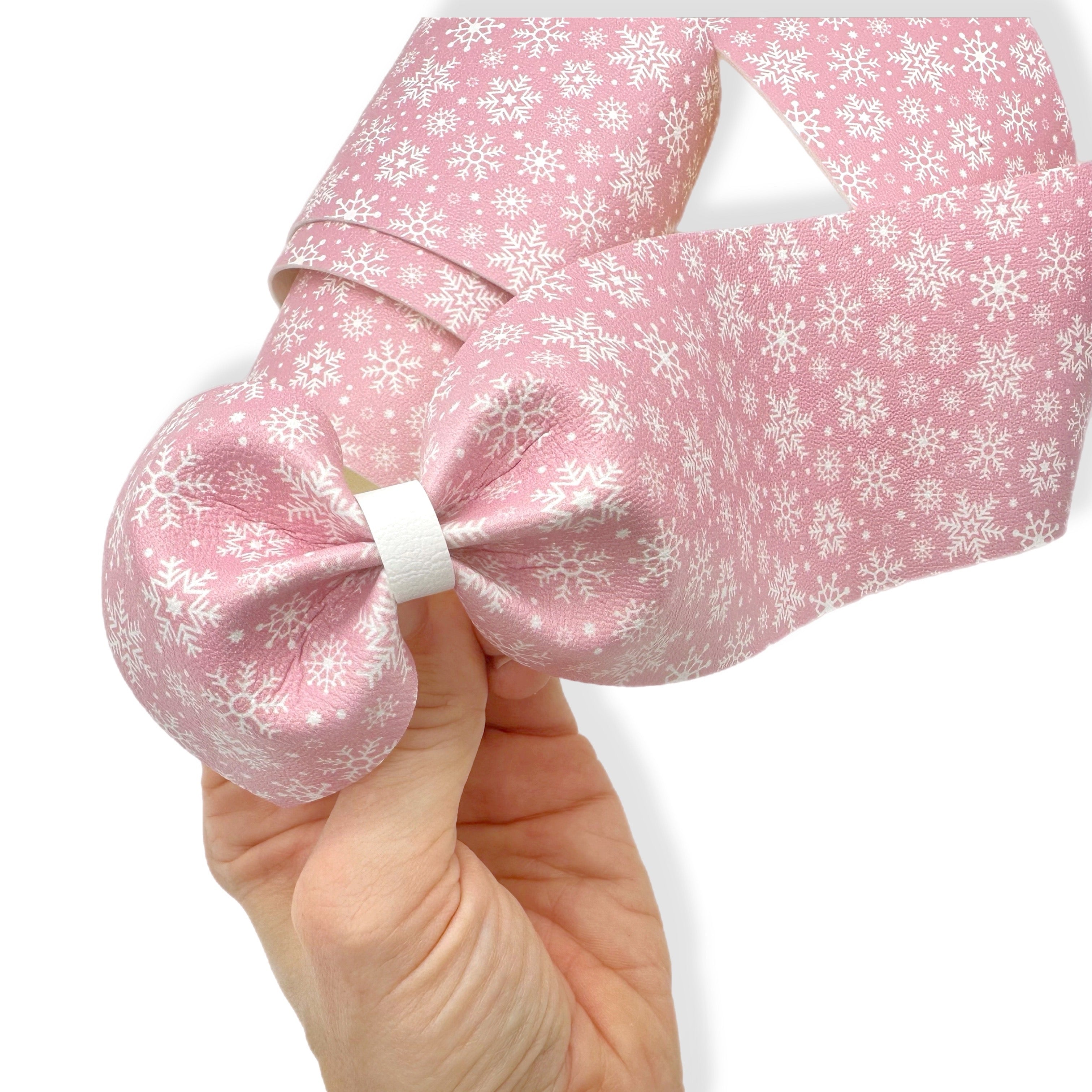 DUSKY PINK SNOWFLAKES FAUX LEATHER MEGA BOW STRIPS