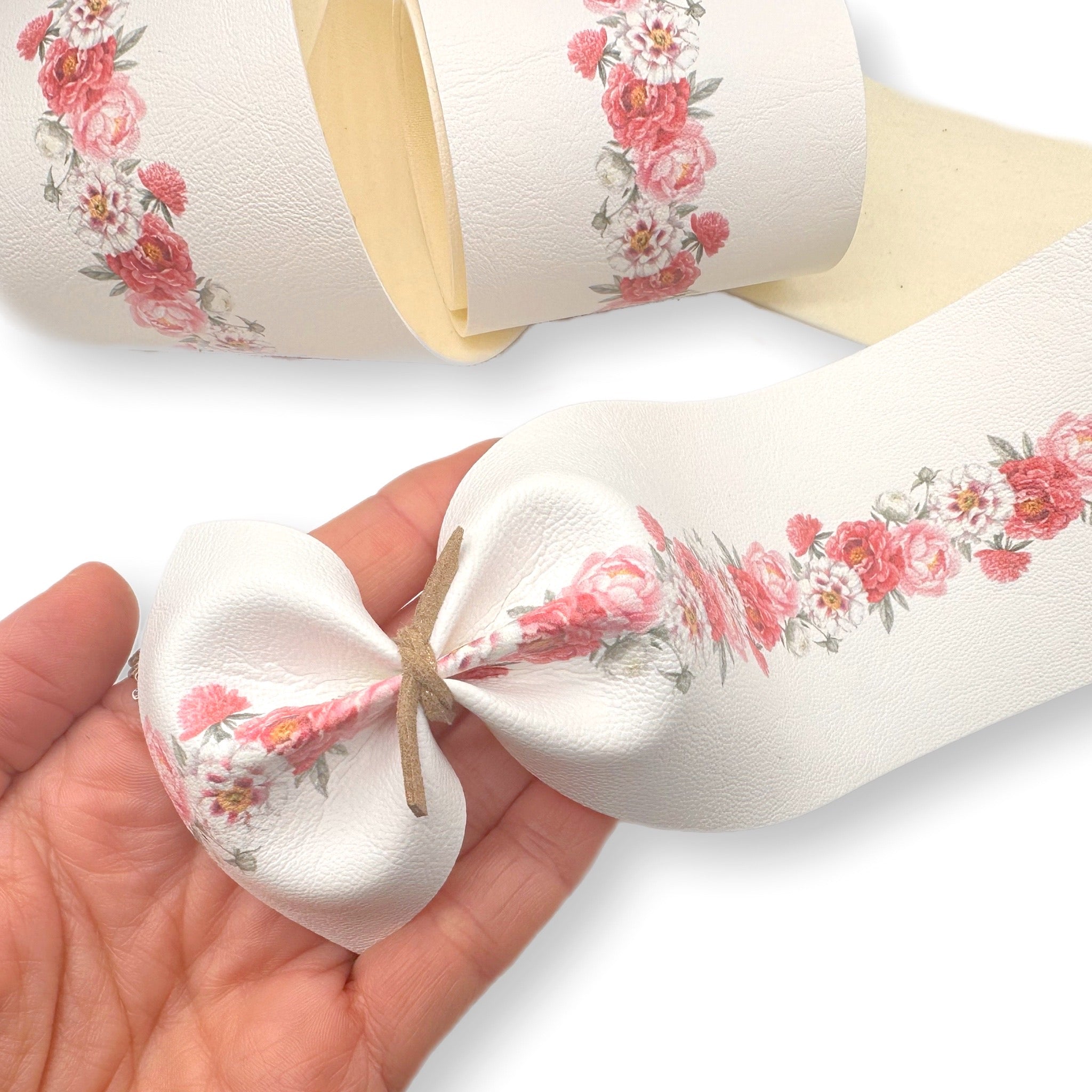 These beautiful, high quality patterned faux leather mega bow rolls are approximately 3” tall and 130cm long. Our Reach compliant faux leather rolls can be used for pinch bows or regular bows with very little wastage.