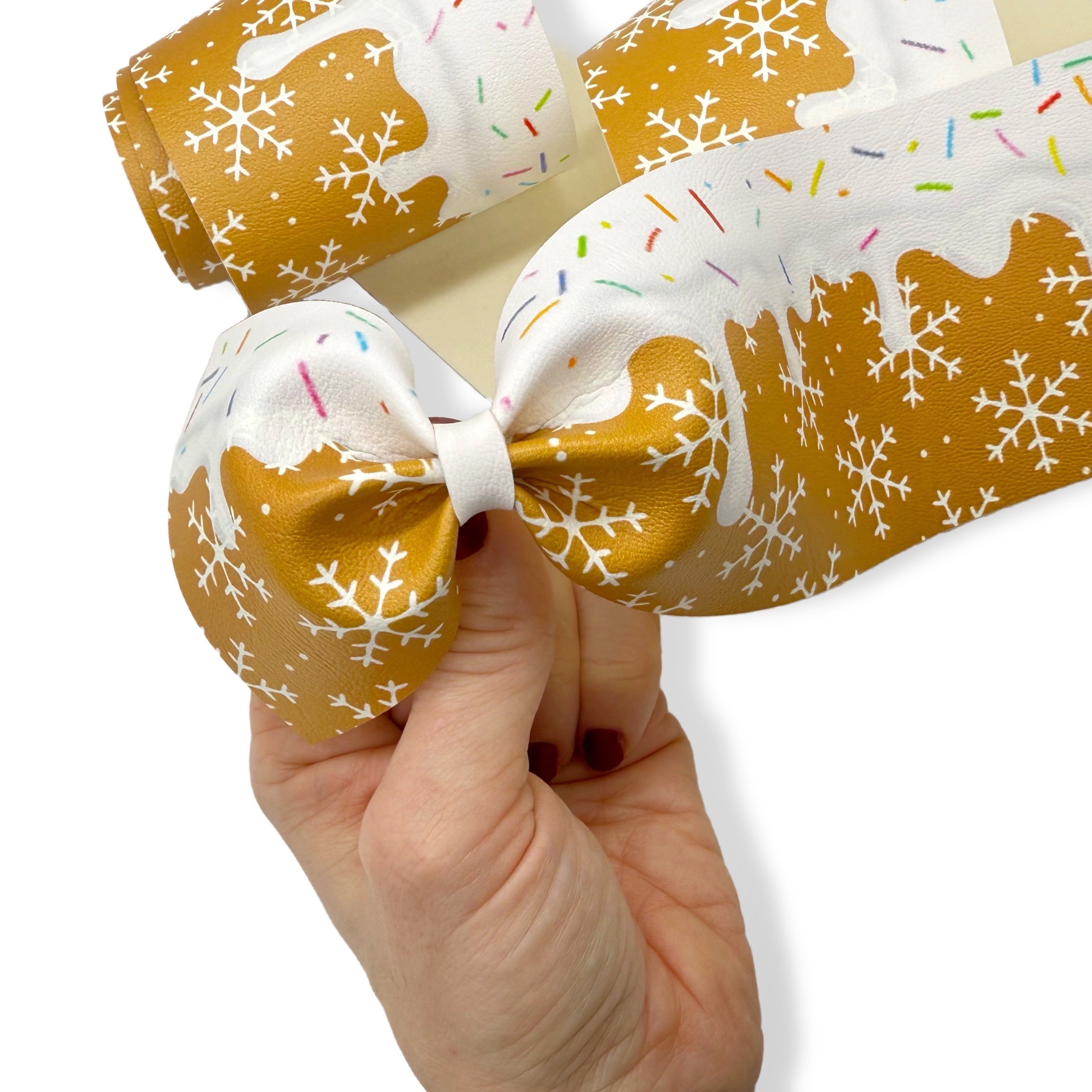 Gingerbread Drip Faux Leather Mega Bow Strips- 2 Sizes
