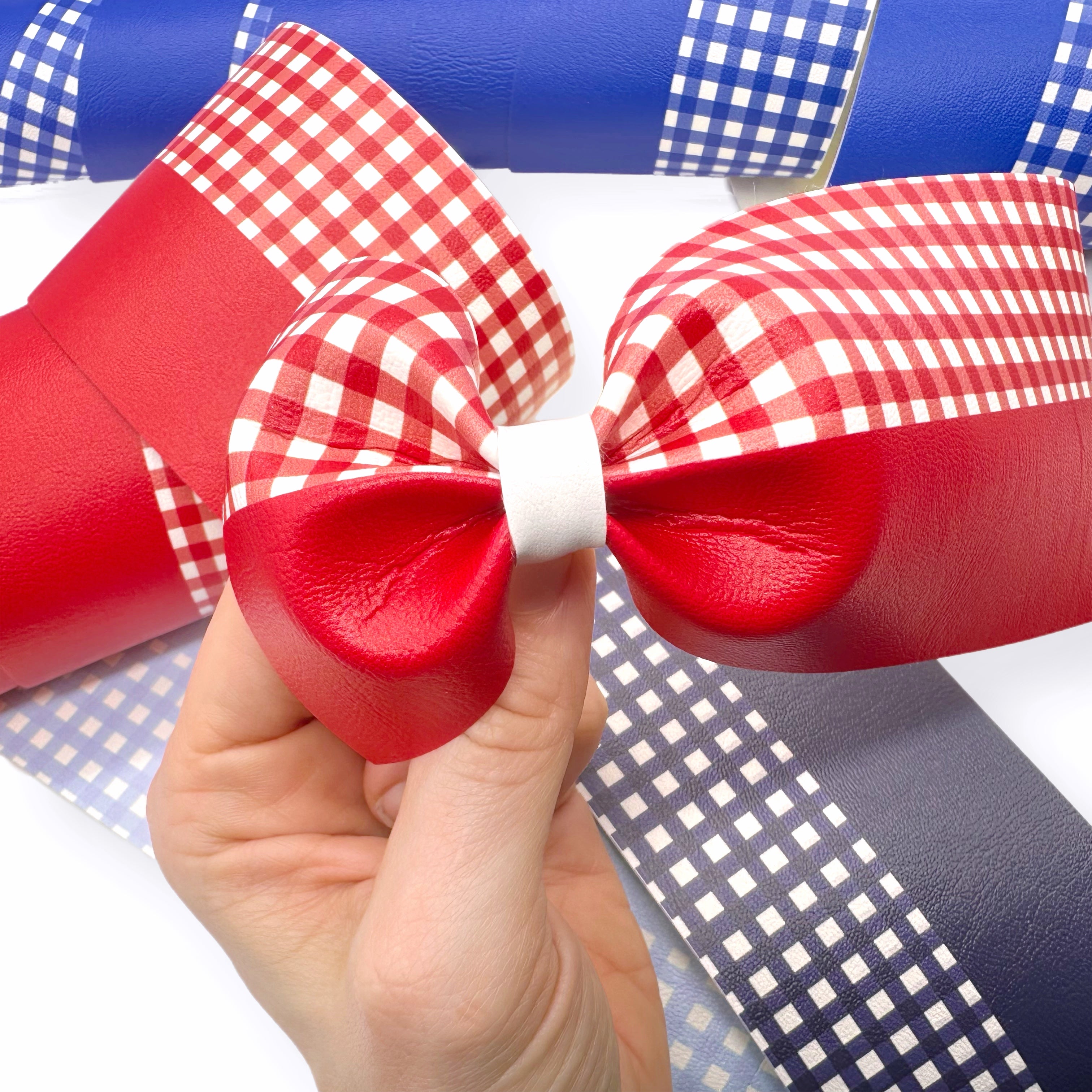 Half Half School Gingham Bow Strips Faux Leather Mega Bow Strips