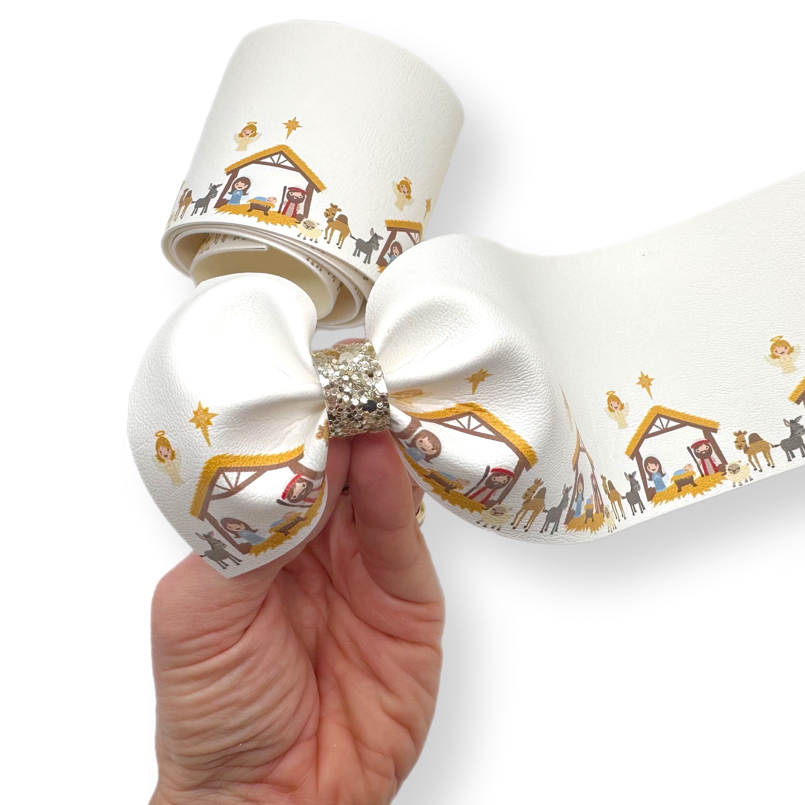 These beautiful, high quality patterned faux leather mega bow rolls are approximately 3” tall and 130cm long. Our Reach compliant faux leather rolls can be used for pinch bows or regular bows with very little wastage.
