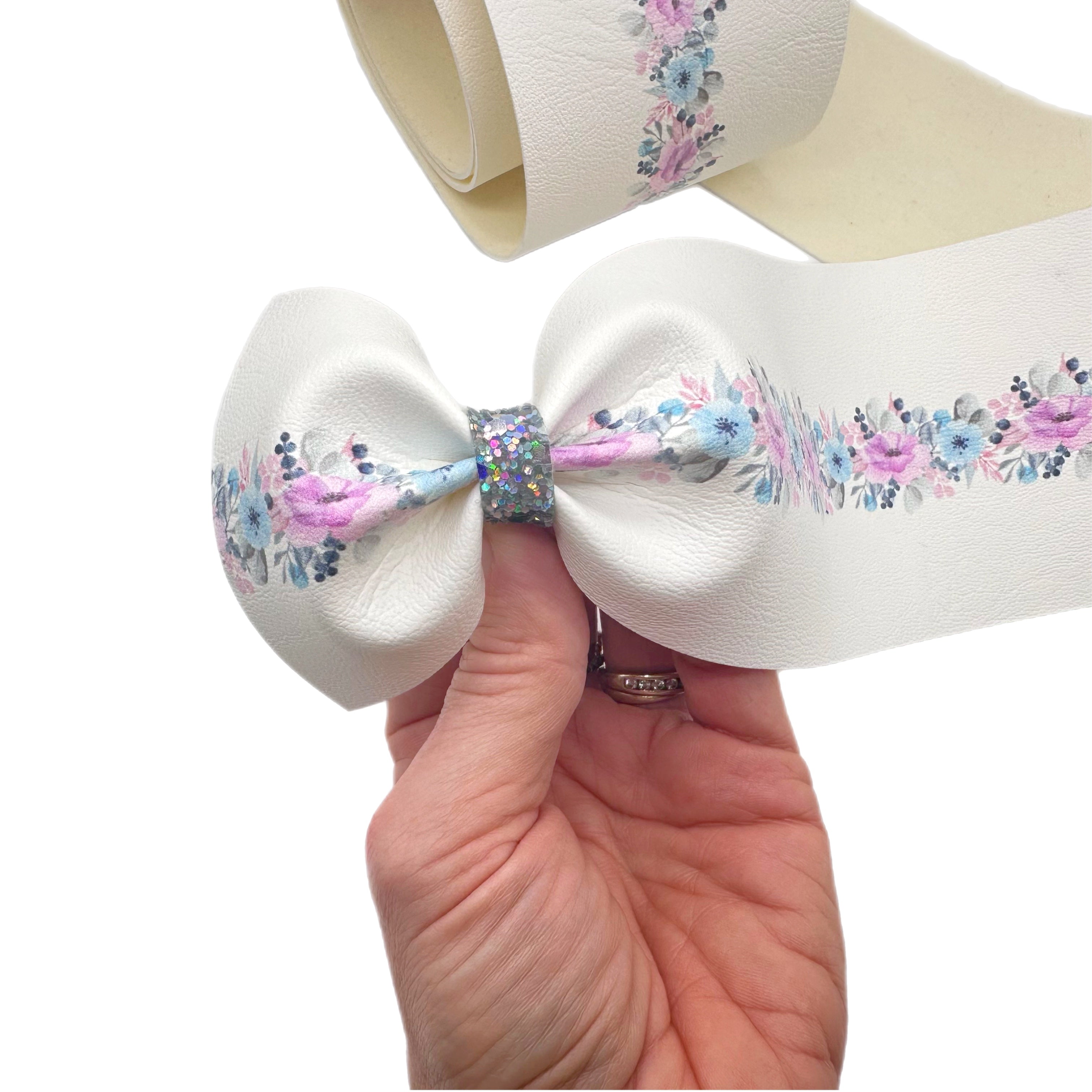 Lilac & Blue Flower Garland Faux Leather - Mega Bow Strips