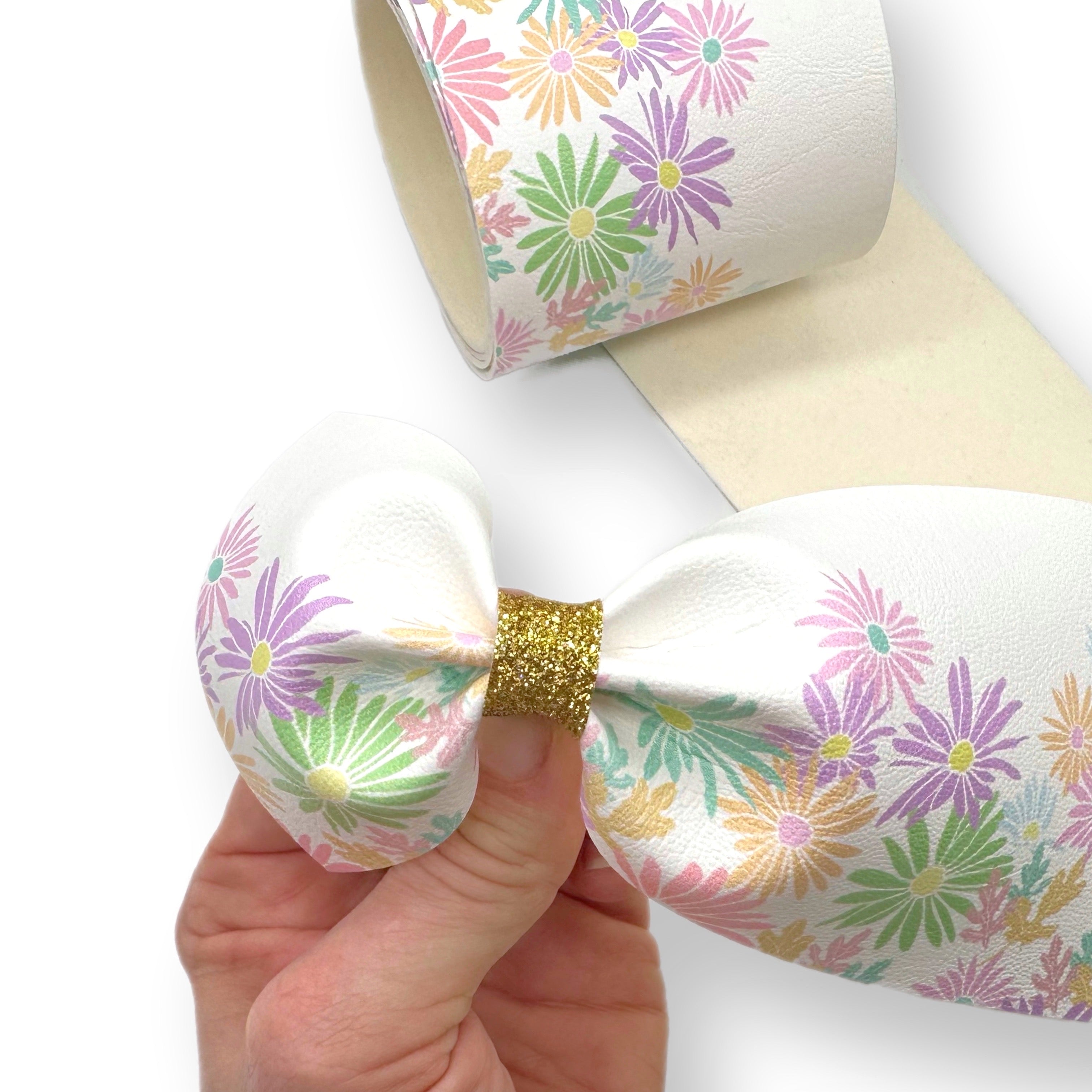 These beautiful, high quality patterned faux leather mega bow rolls are approximately 3” tall and 130cm long. Our Reach compliant faux leather rolls can be used for pinch bows or regular bows with very little wastage.