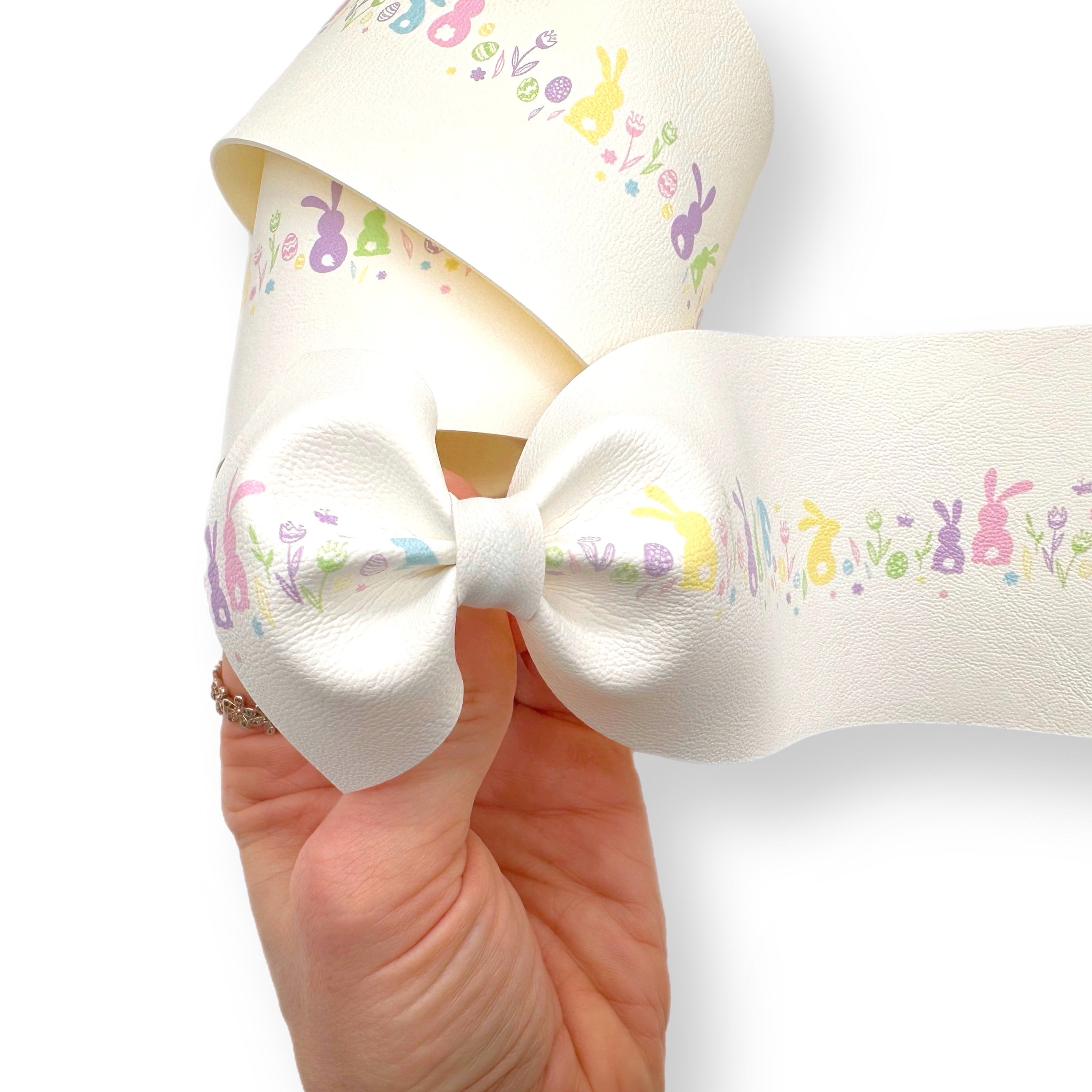 Pastel Rainbow Bunny Bums Faux Leather Mega Bow Strips