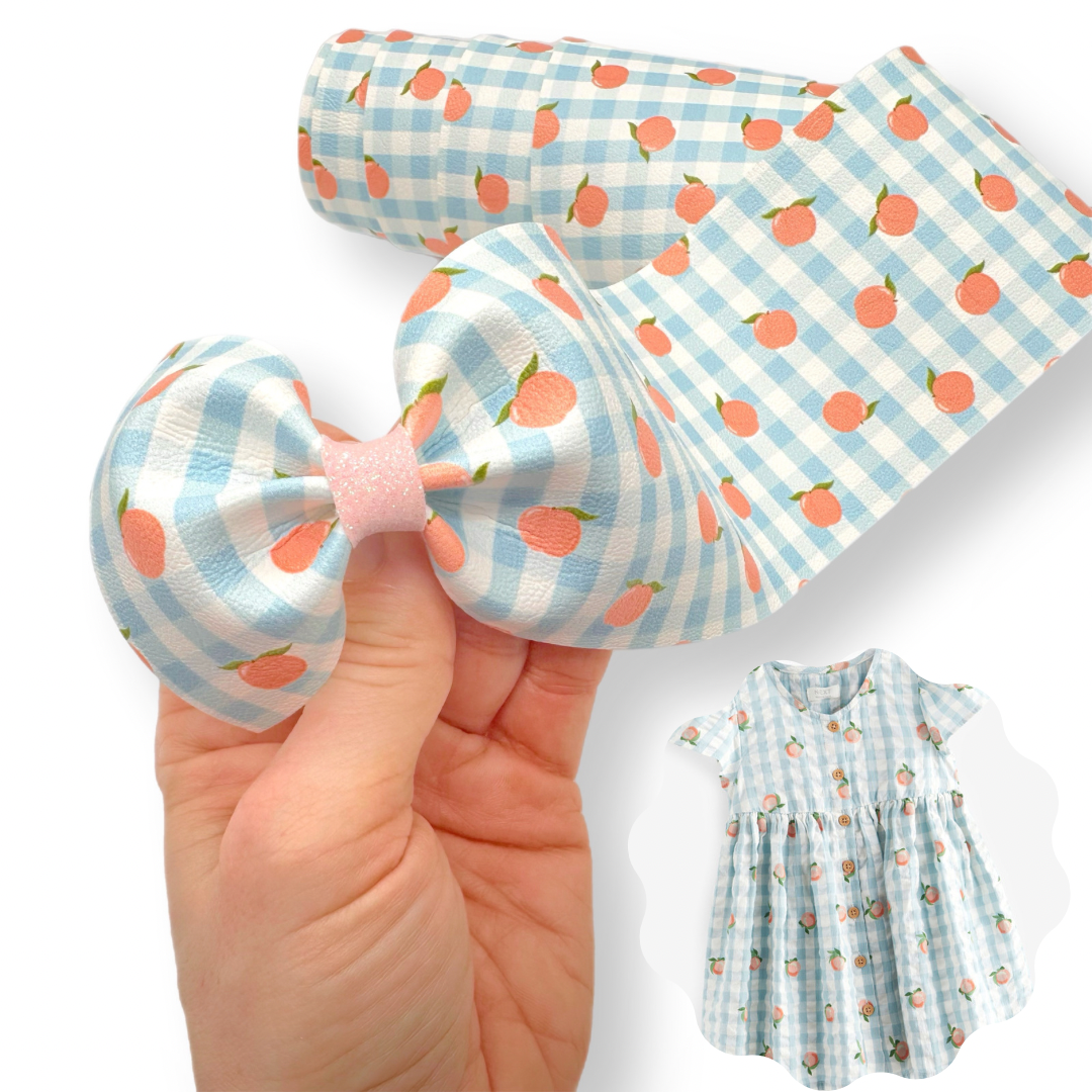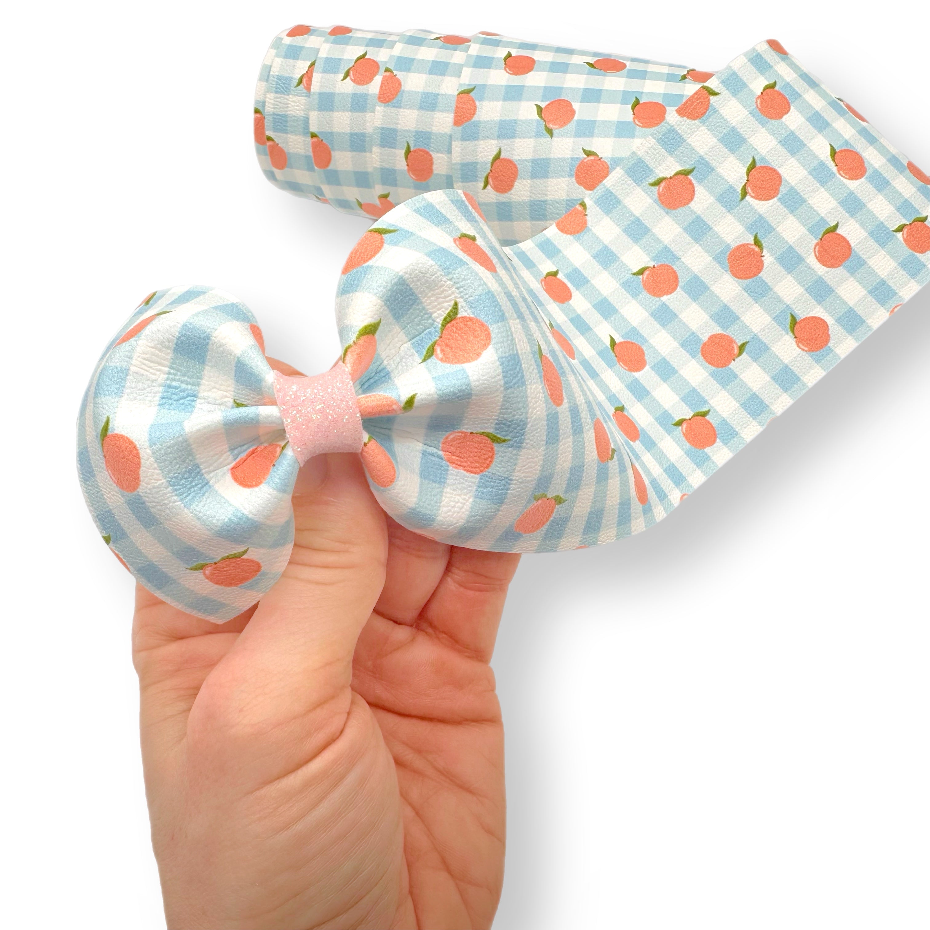 Peaches Blue Gingham Faux Leather Mega Bow Strips