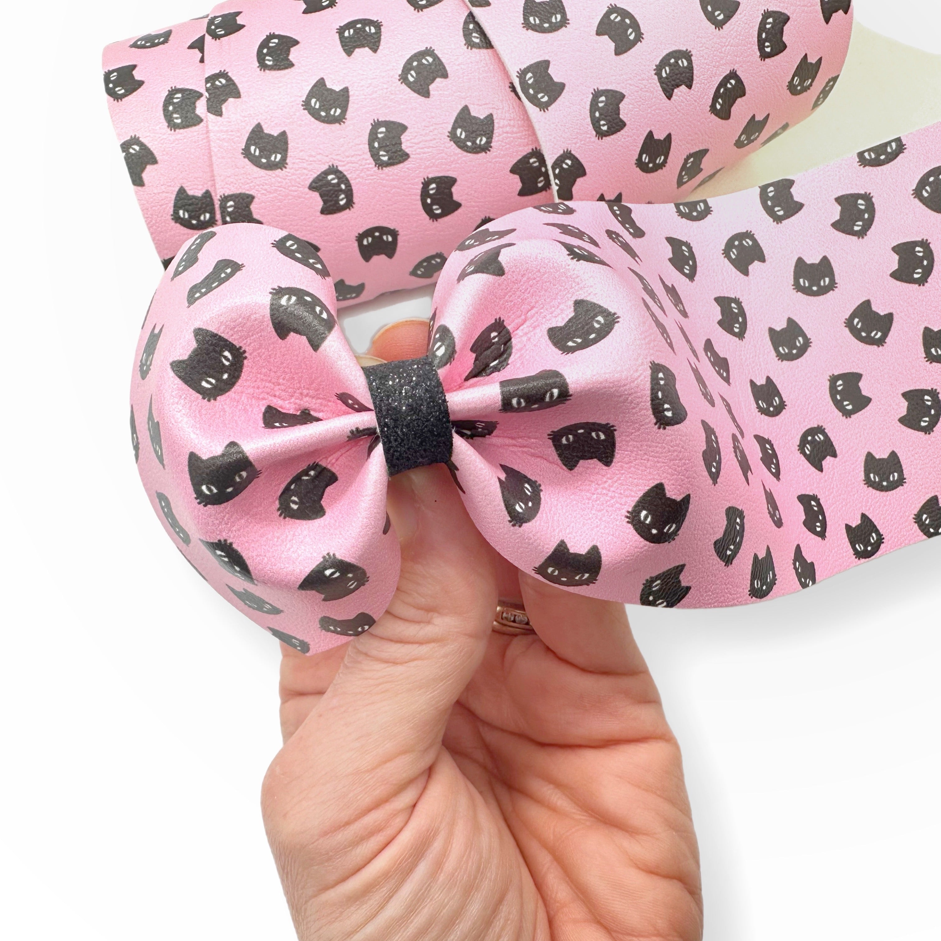 Pink Mini Cat Faces Faux Leather Mega Bow Strips