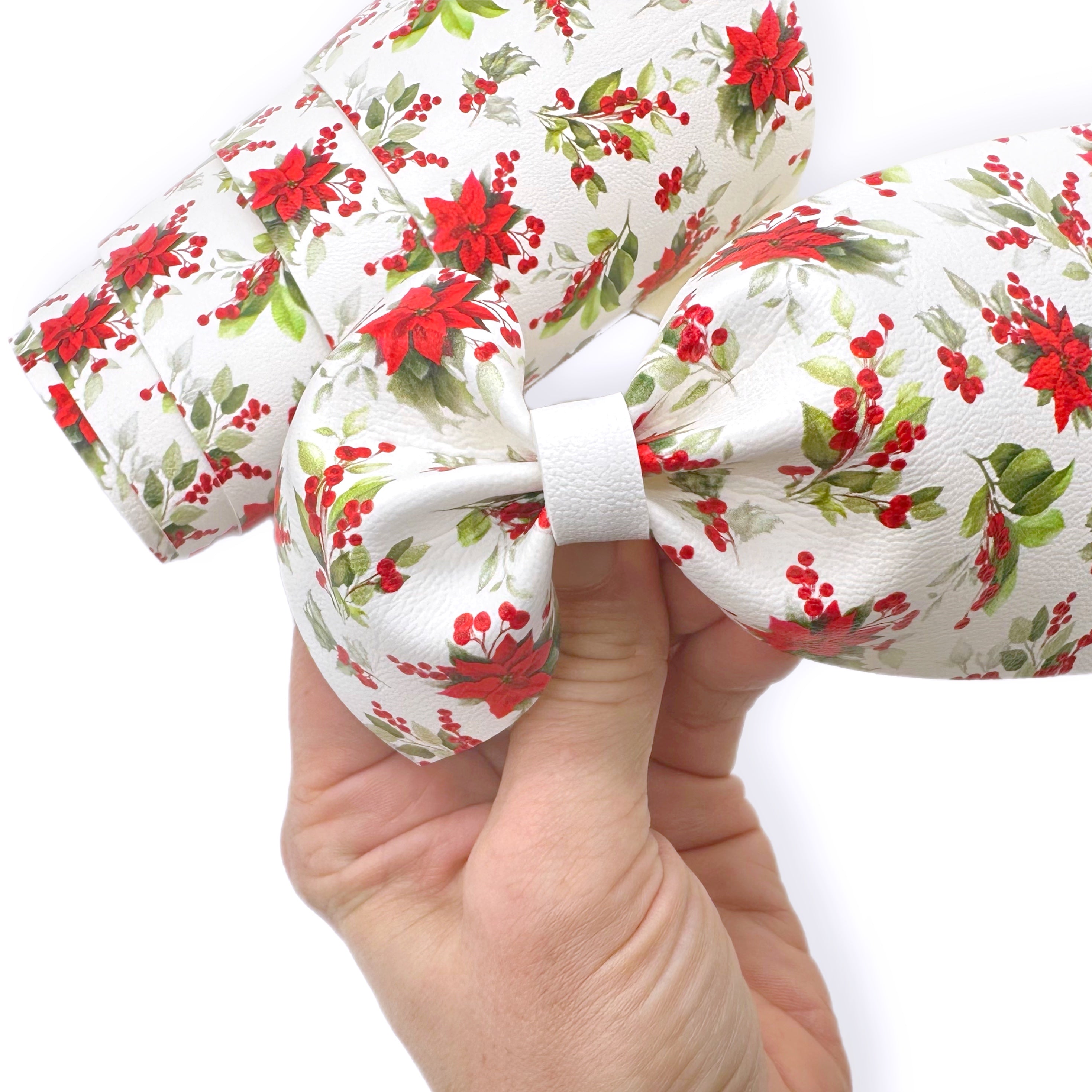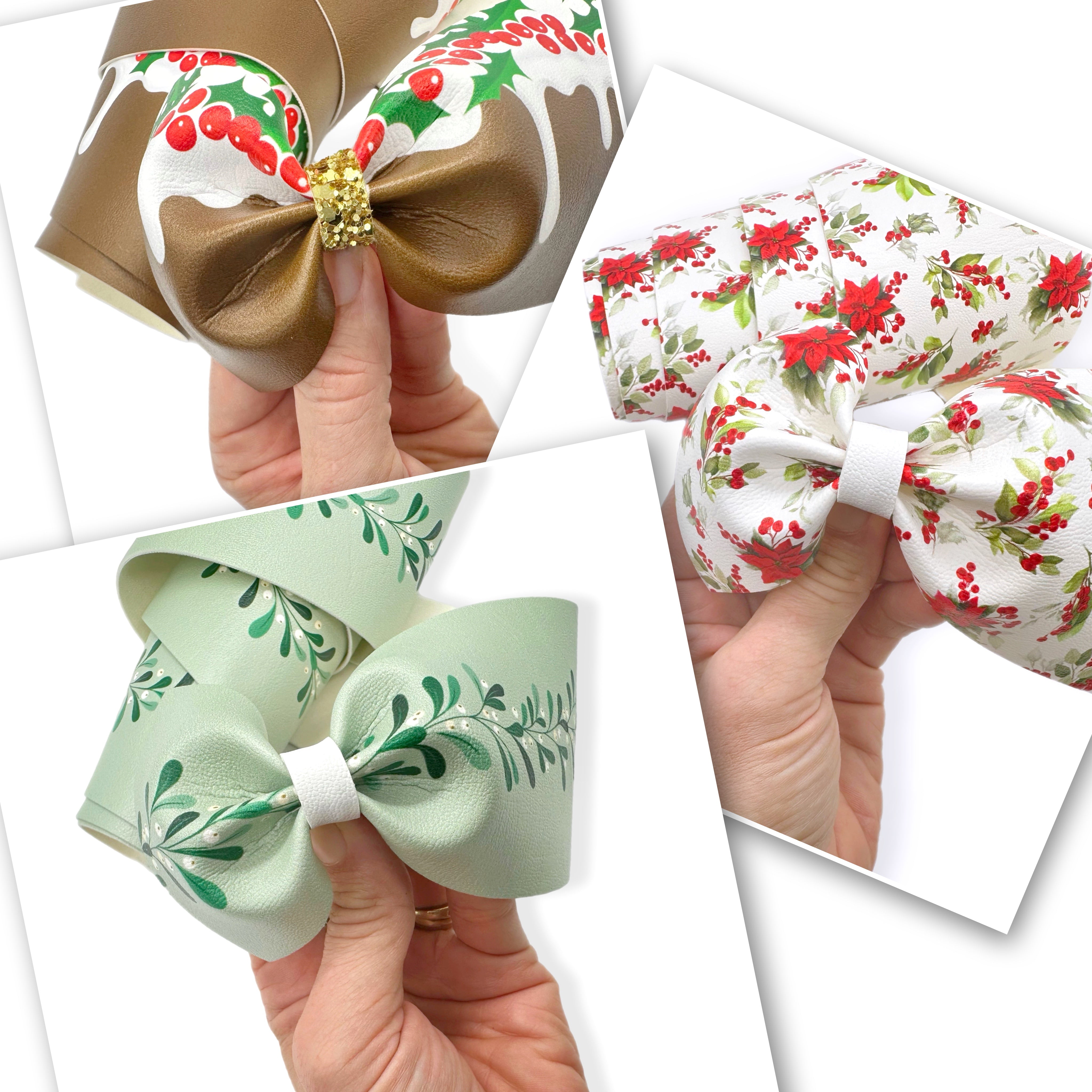Pretty Christmas Floral Faux Leather Mega Bow Strips