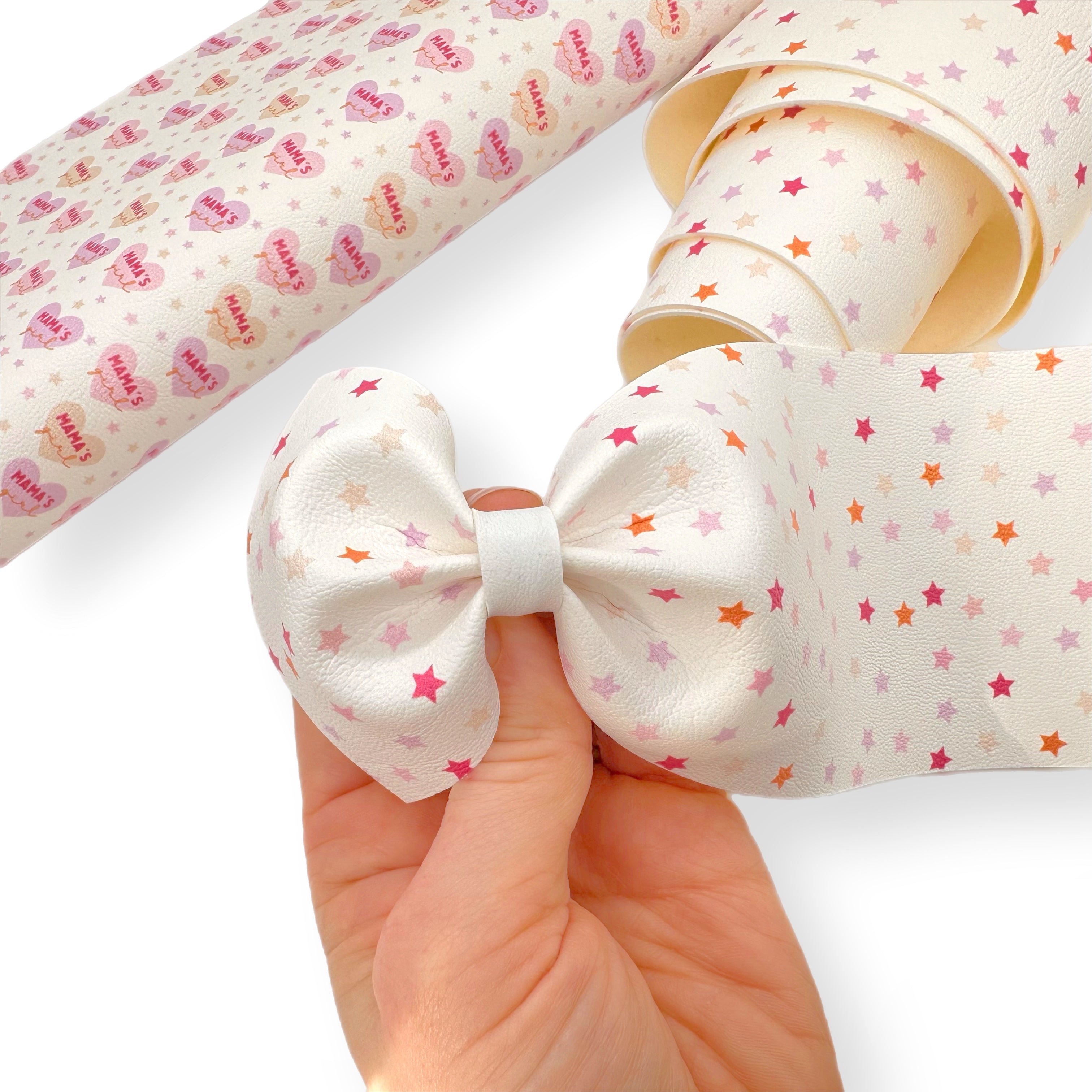 These beautiful, high quality patterned faux leather mega bow rolls are approximately 3” tall and 130cm long. Our Reach compliant faux leather rolls can be used for pinch bows or regular bows with very little wastage.