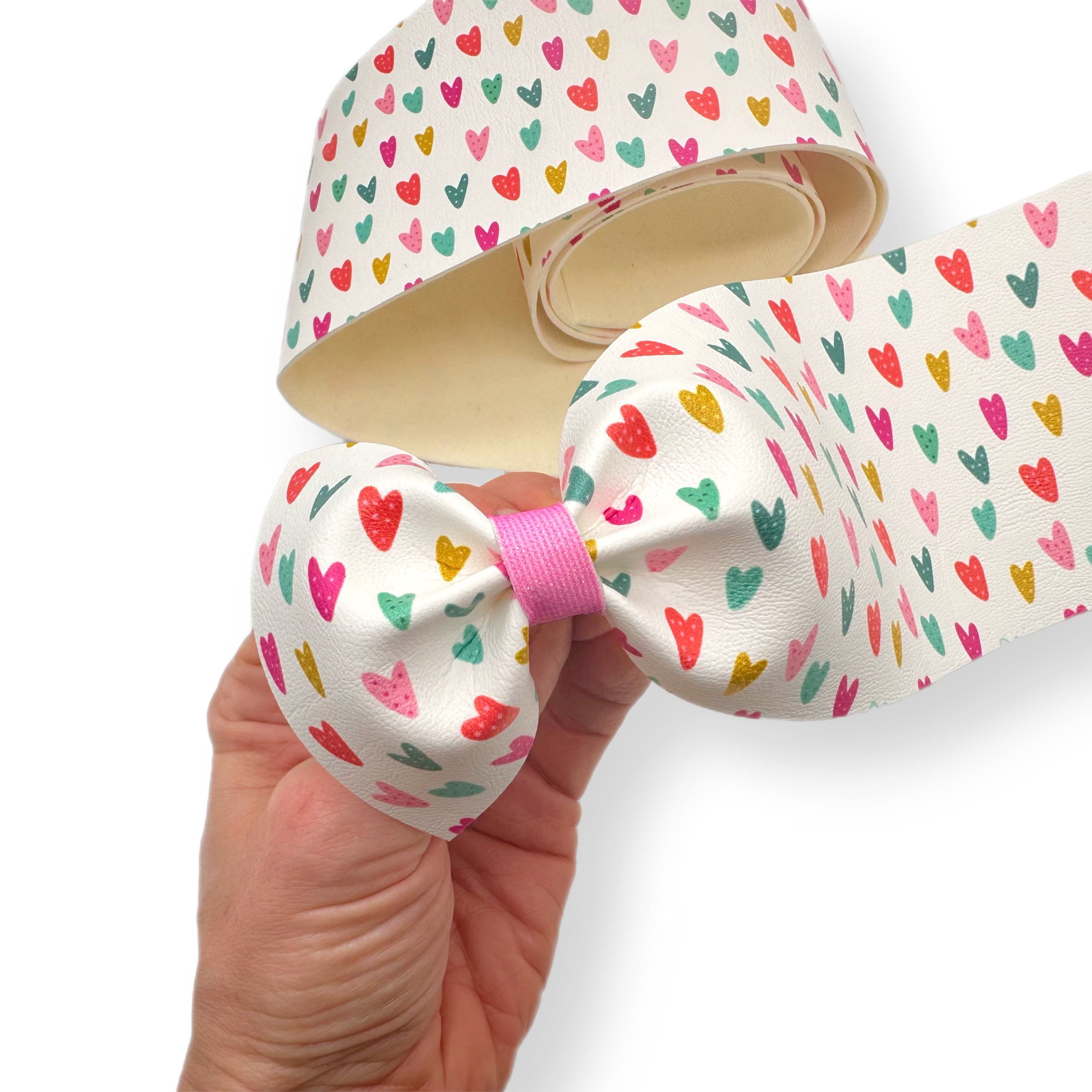 Rainbow Doodle Hearts Faux Leather - Mega Bow Strips