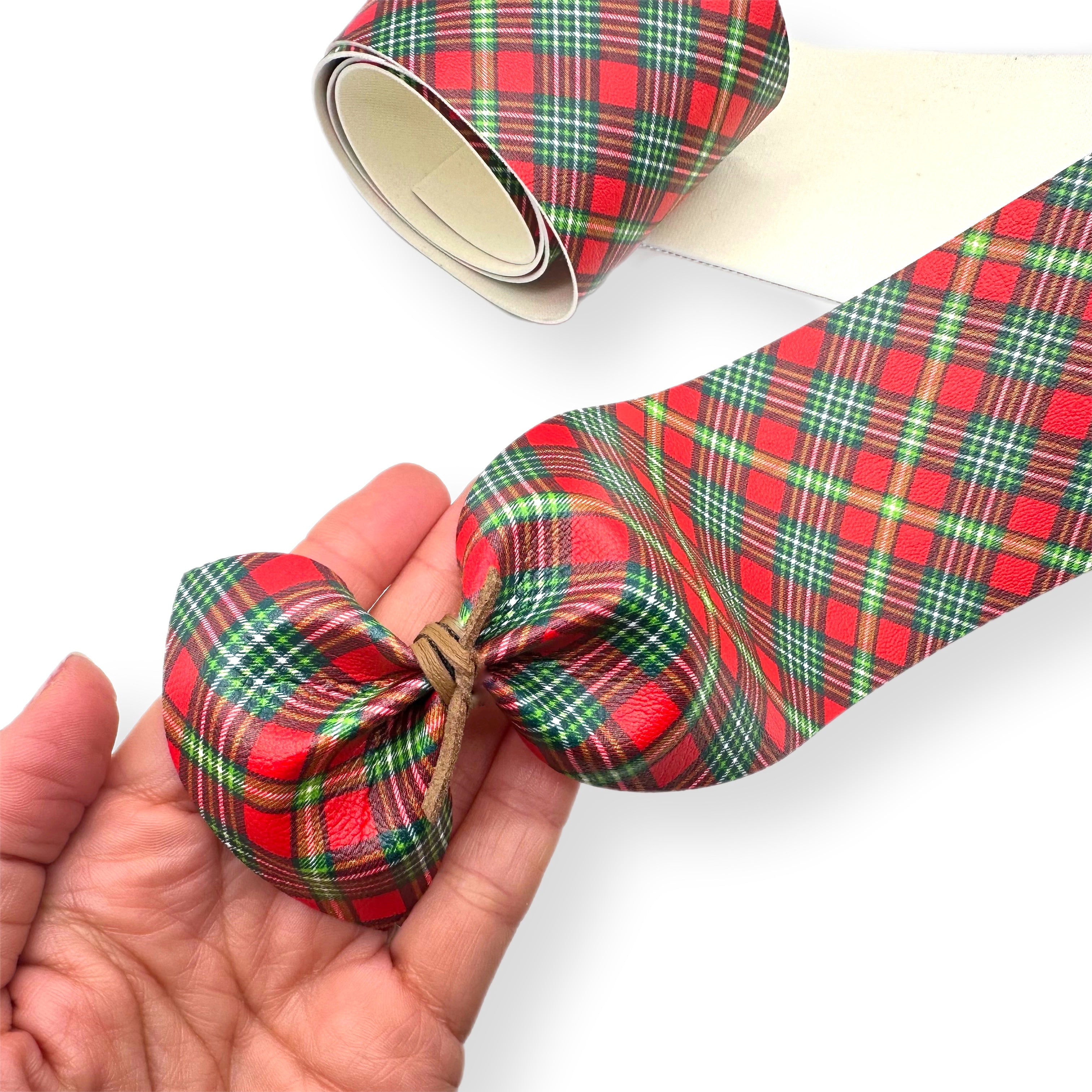 Red & Green Tartan Faux Leather Mega Bow Strips- 2 Sizes