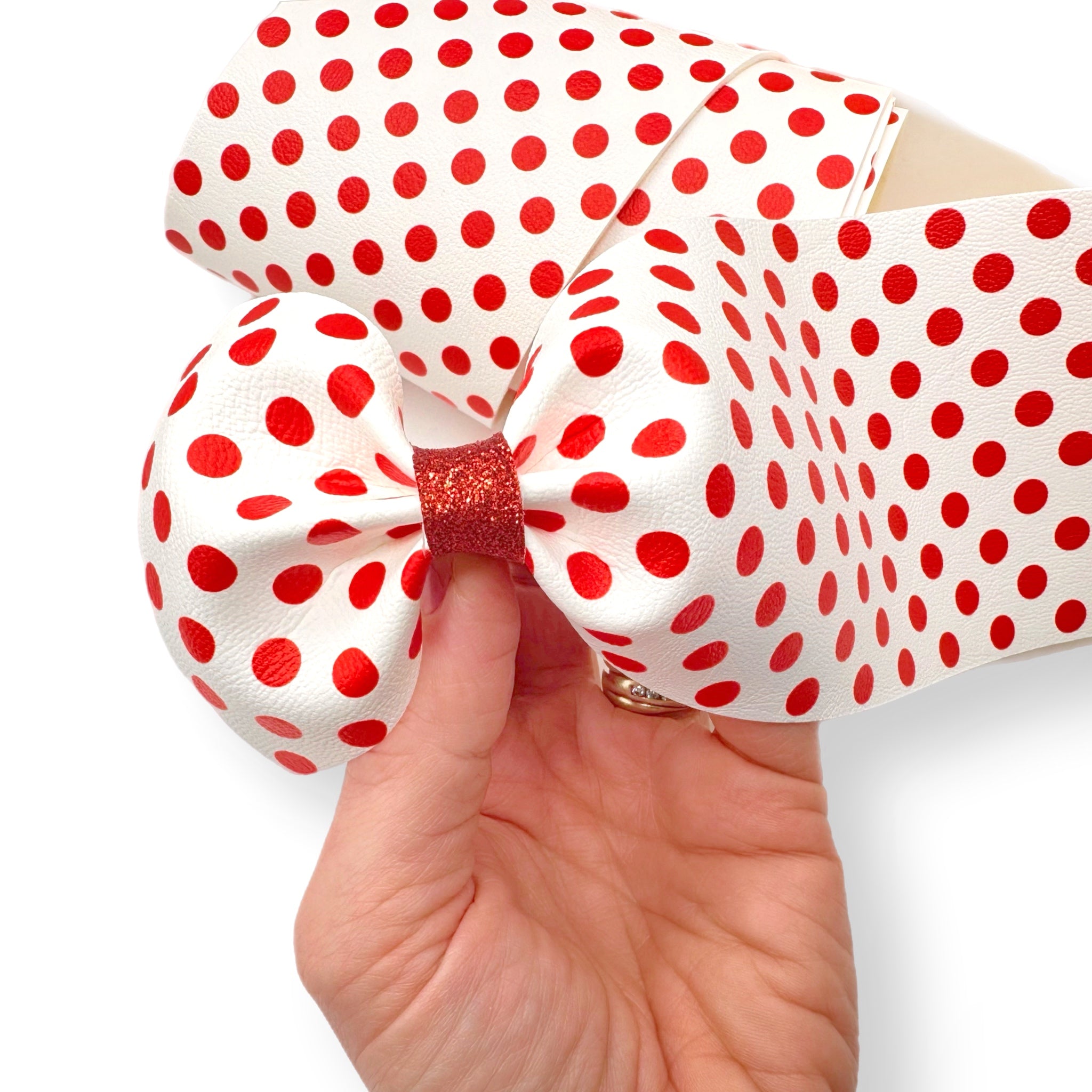 Red Spotty Polka Dots Faux Leather Mega Bow Strips