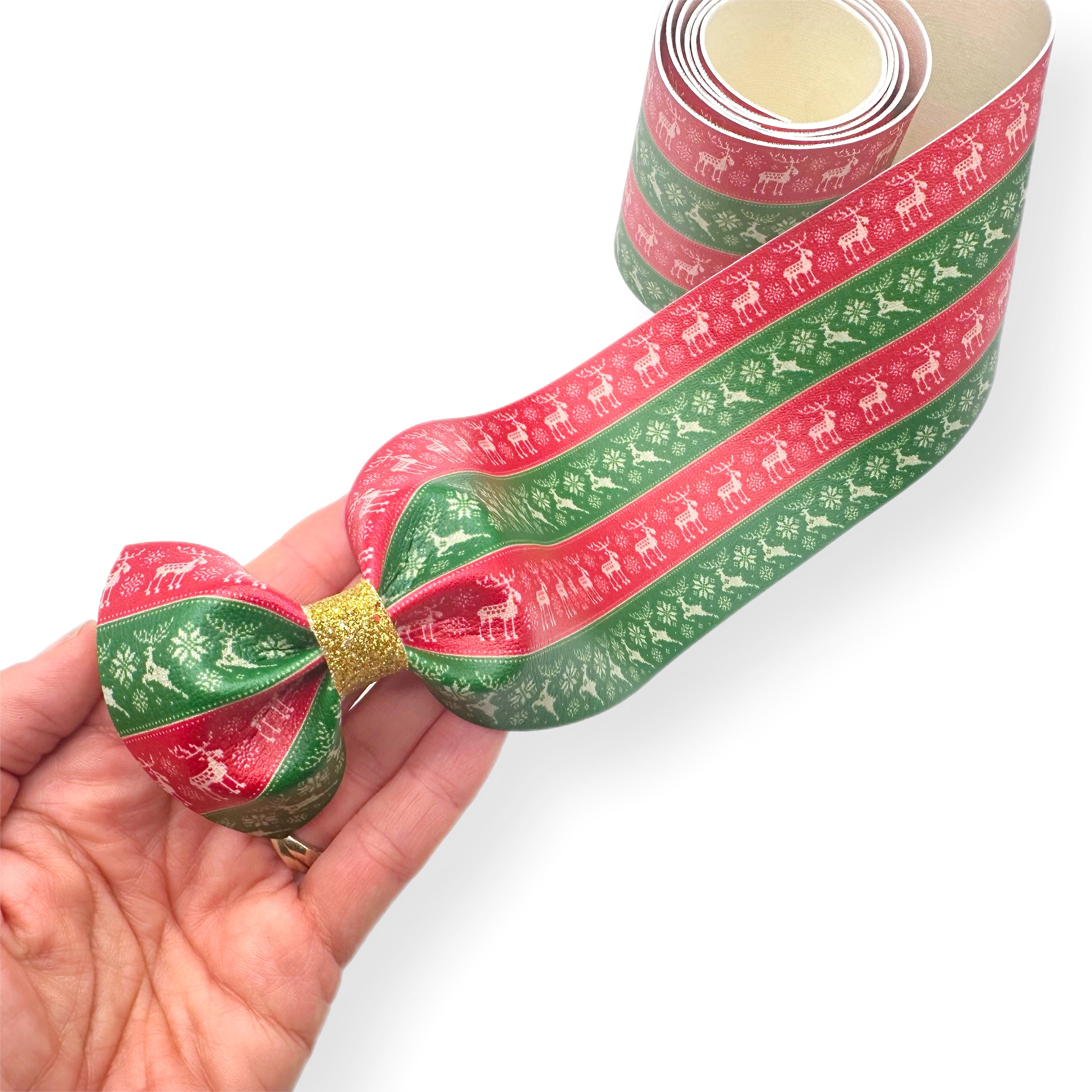 Scandi Xmas Reindeer Stripes | Faux Leather Mega Bow Strips