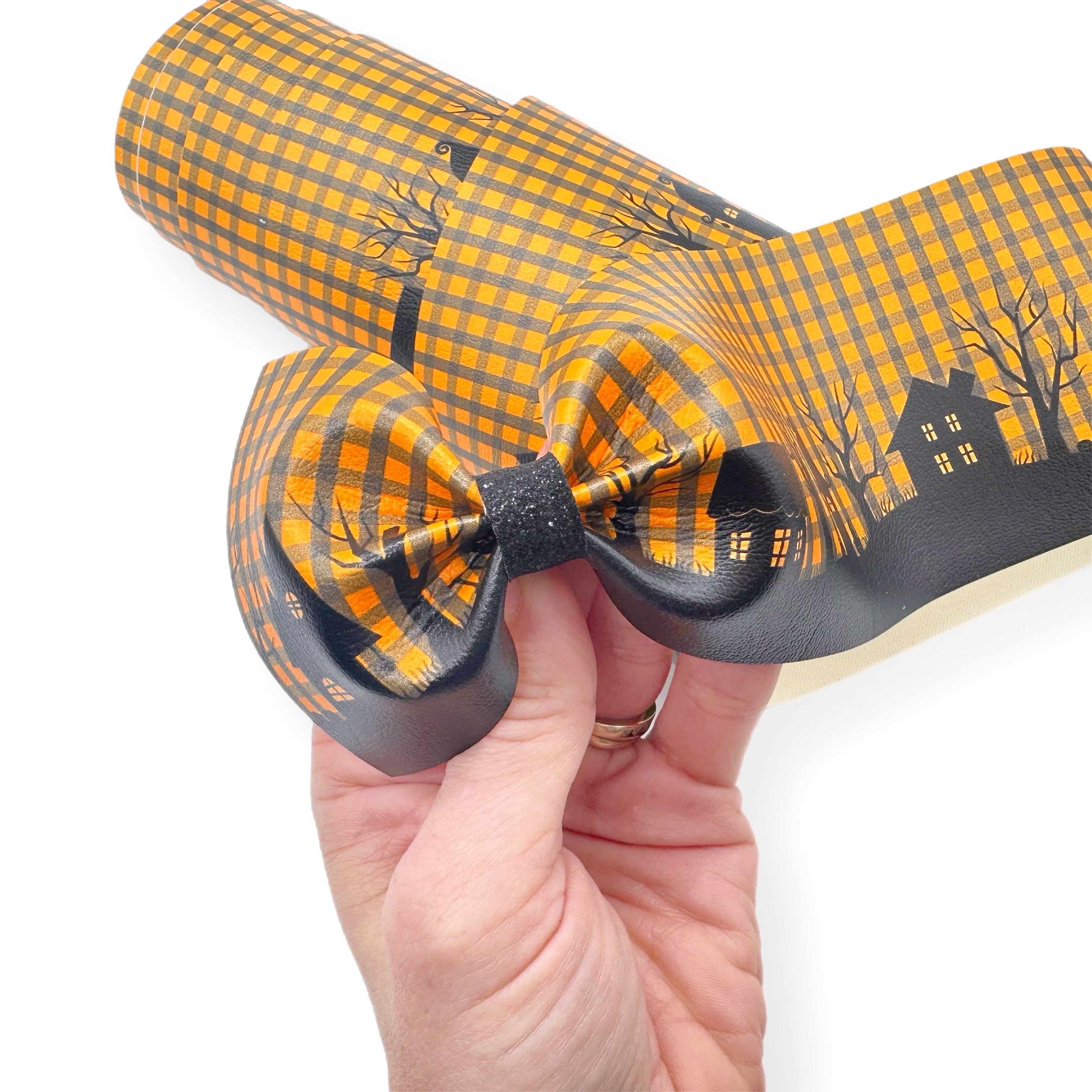 Spooky Pumpkin Town Faux Leather Mega Bow Strips