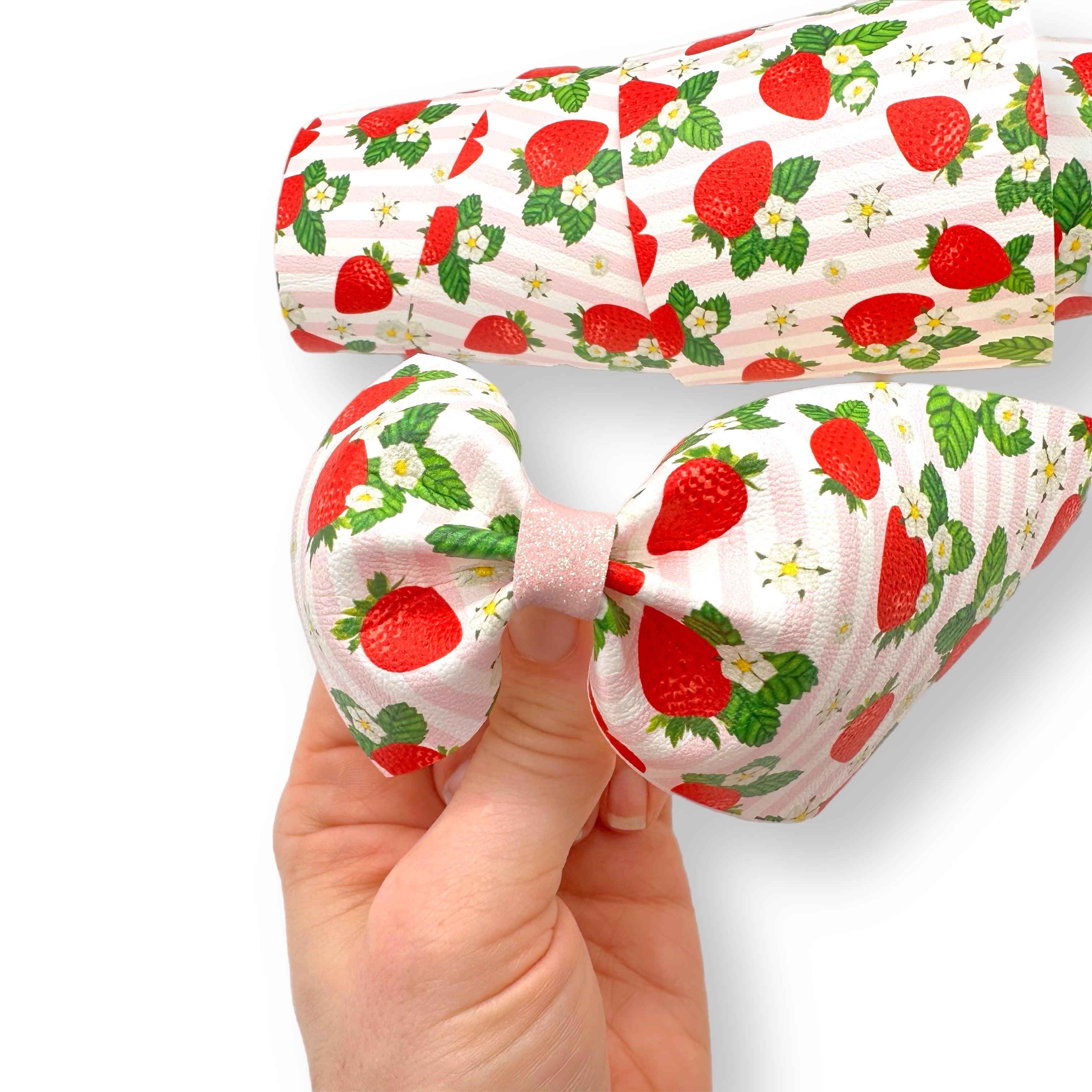 Strawberry Stripes Faux Leather Mega Bow Strips