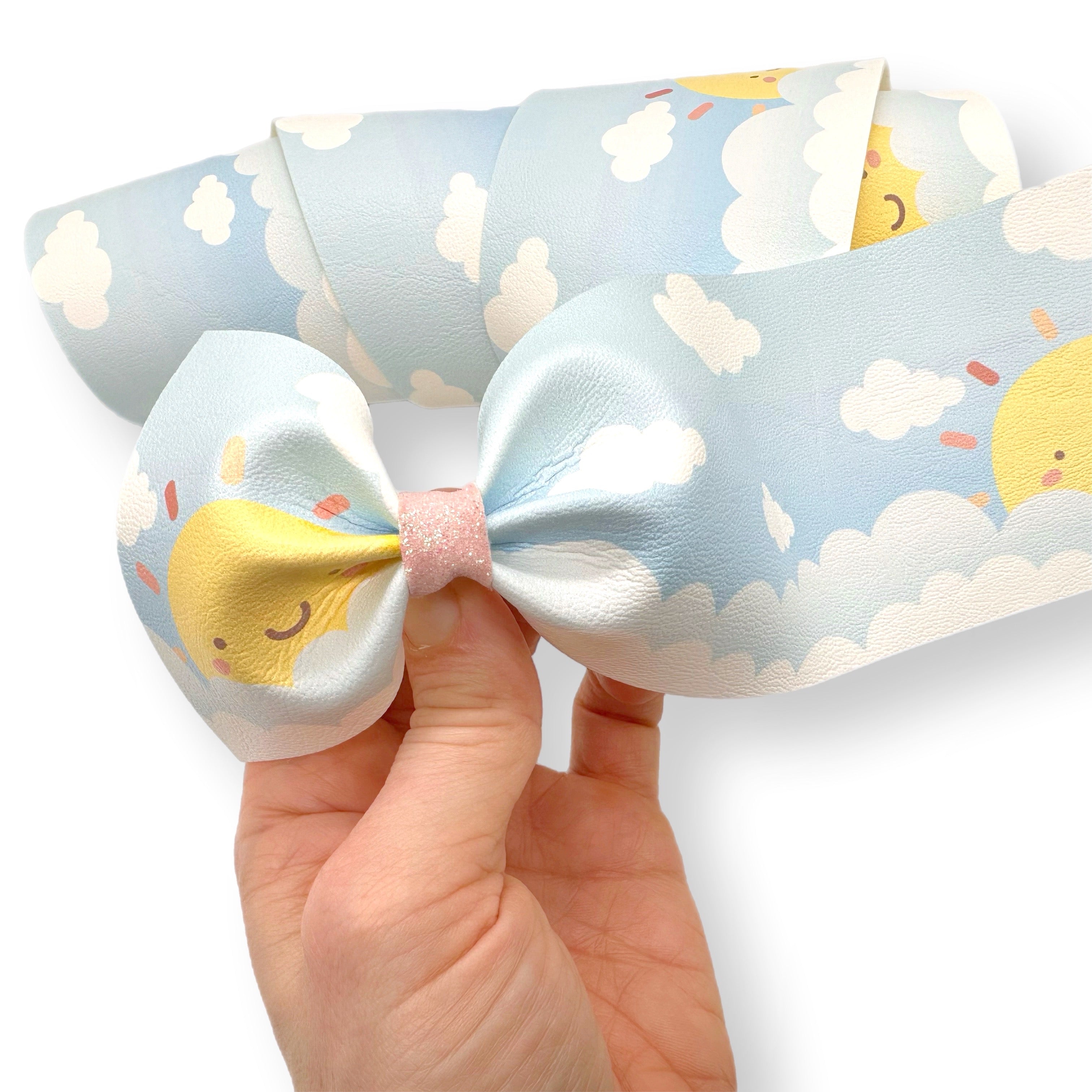 These beautiful, high quality patterned faux leather mega bow rolls are approximately 3” tall and 130cm long. Our Reach compliant faux leather rolls can be used for pinch bows or regular bows with very little wastage.