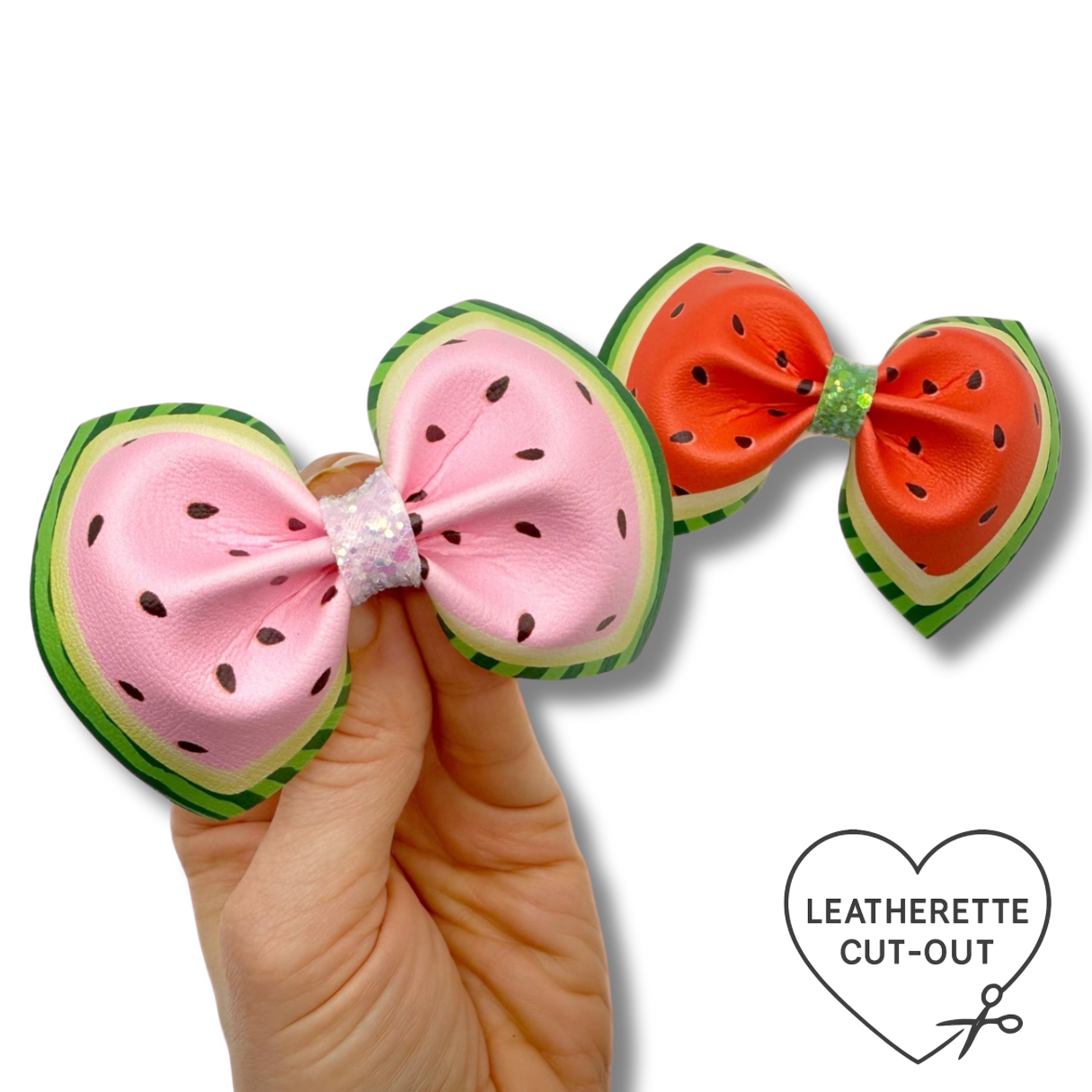 WATERMELON HALVES ‘EASY PEASY’ FAUX LEATHER MEGA BOW STRIPS