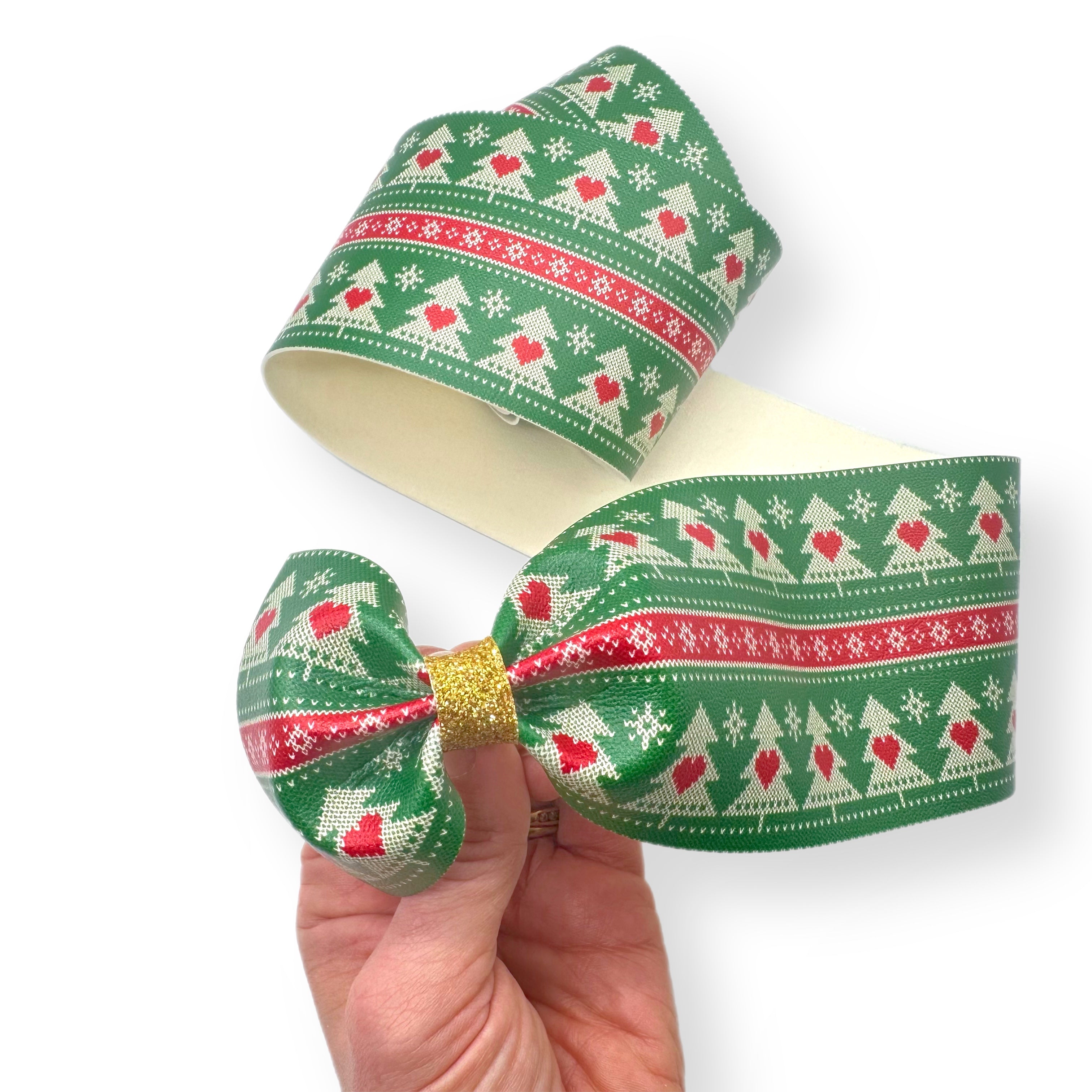 These beautiful, high quality patterned faux leather mega bow rolls are approximately 3” tall and 130cm long. Our Reach compliant faux leather rolls can be used for pinch bows or regular bows with very little wastage.