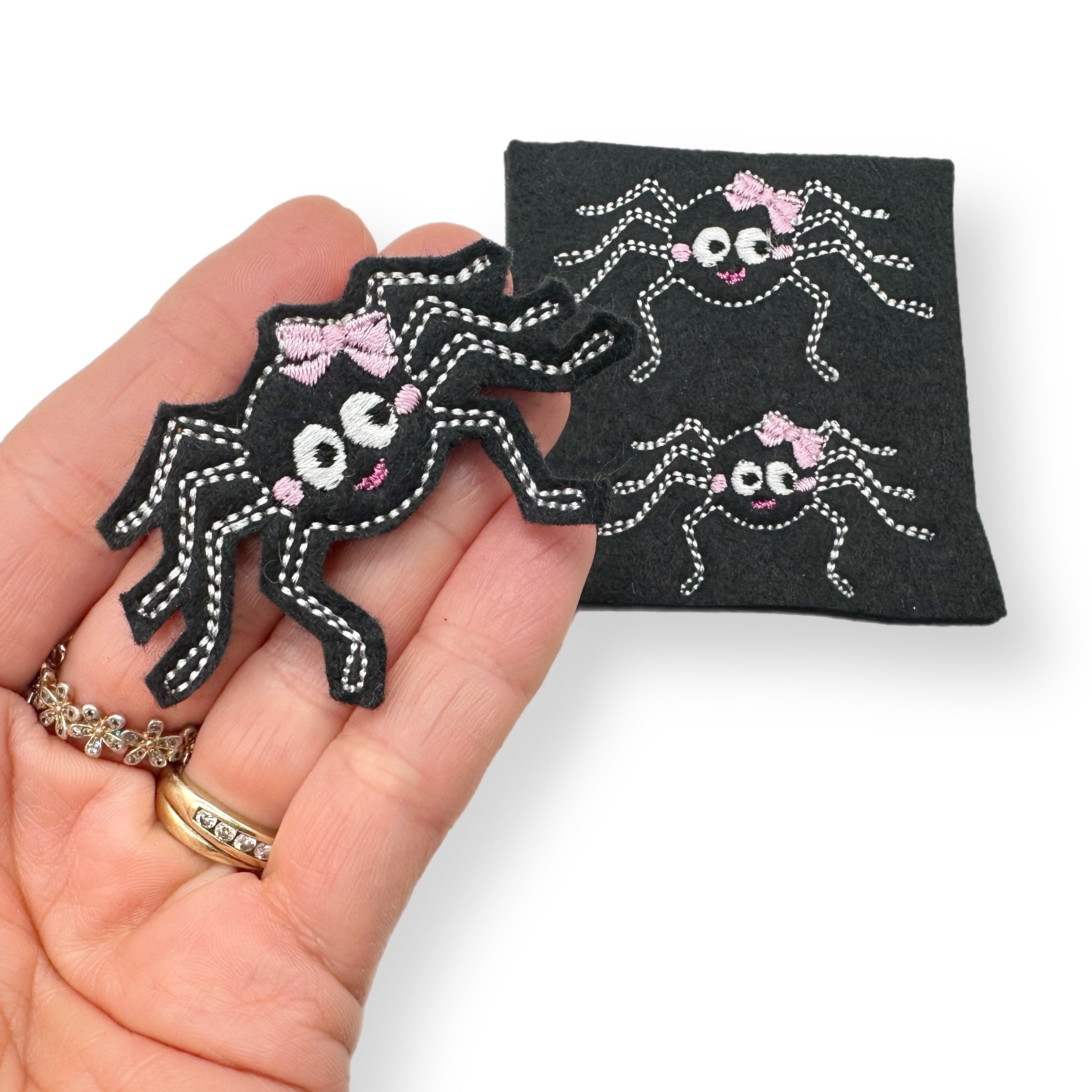 Our exclusive layered Feltie flowers can be done in any colour thread on any colour glitter. We currently offer white, pink or dark pink fine glitter.