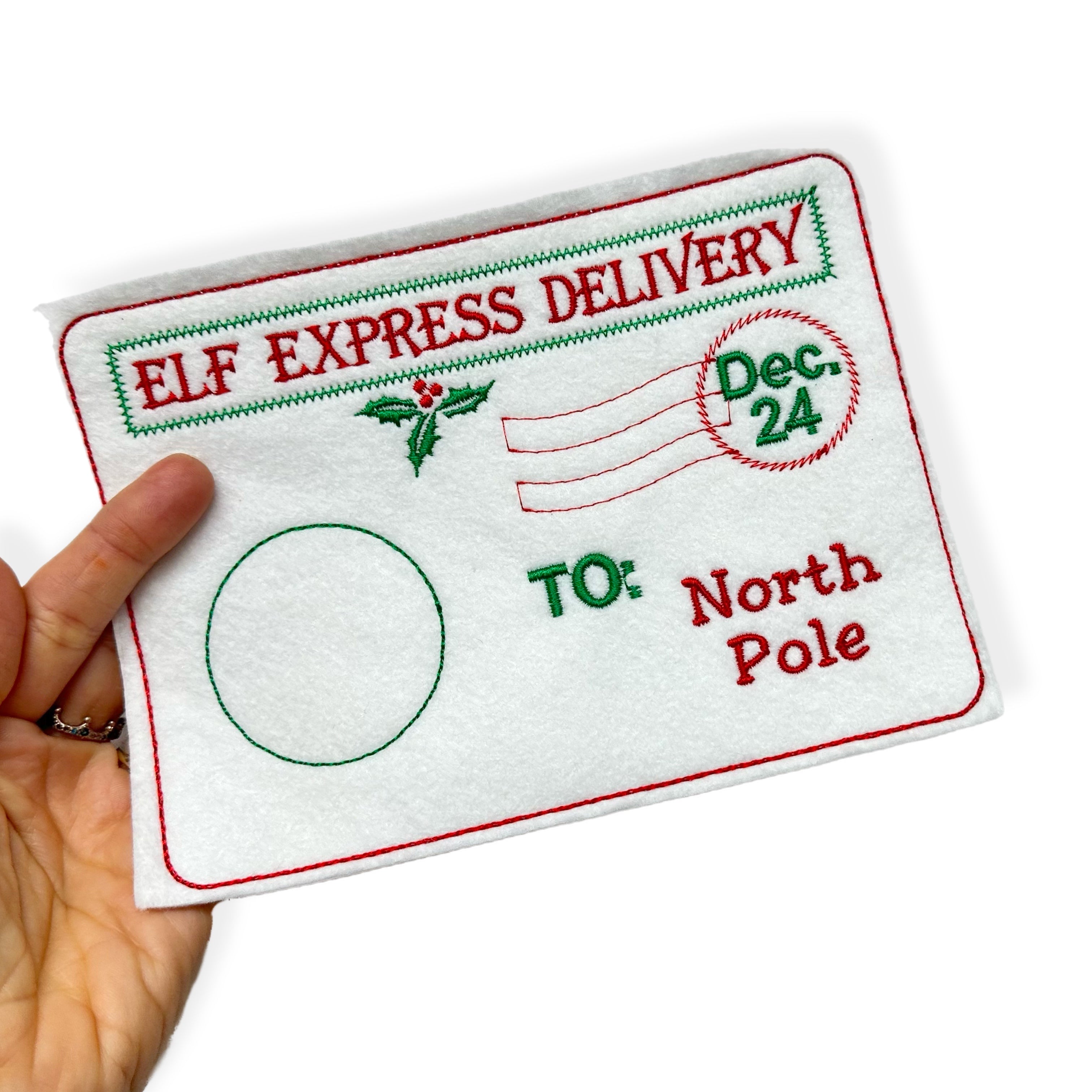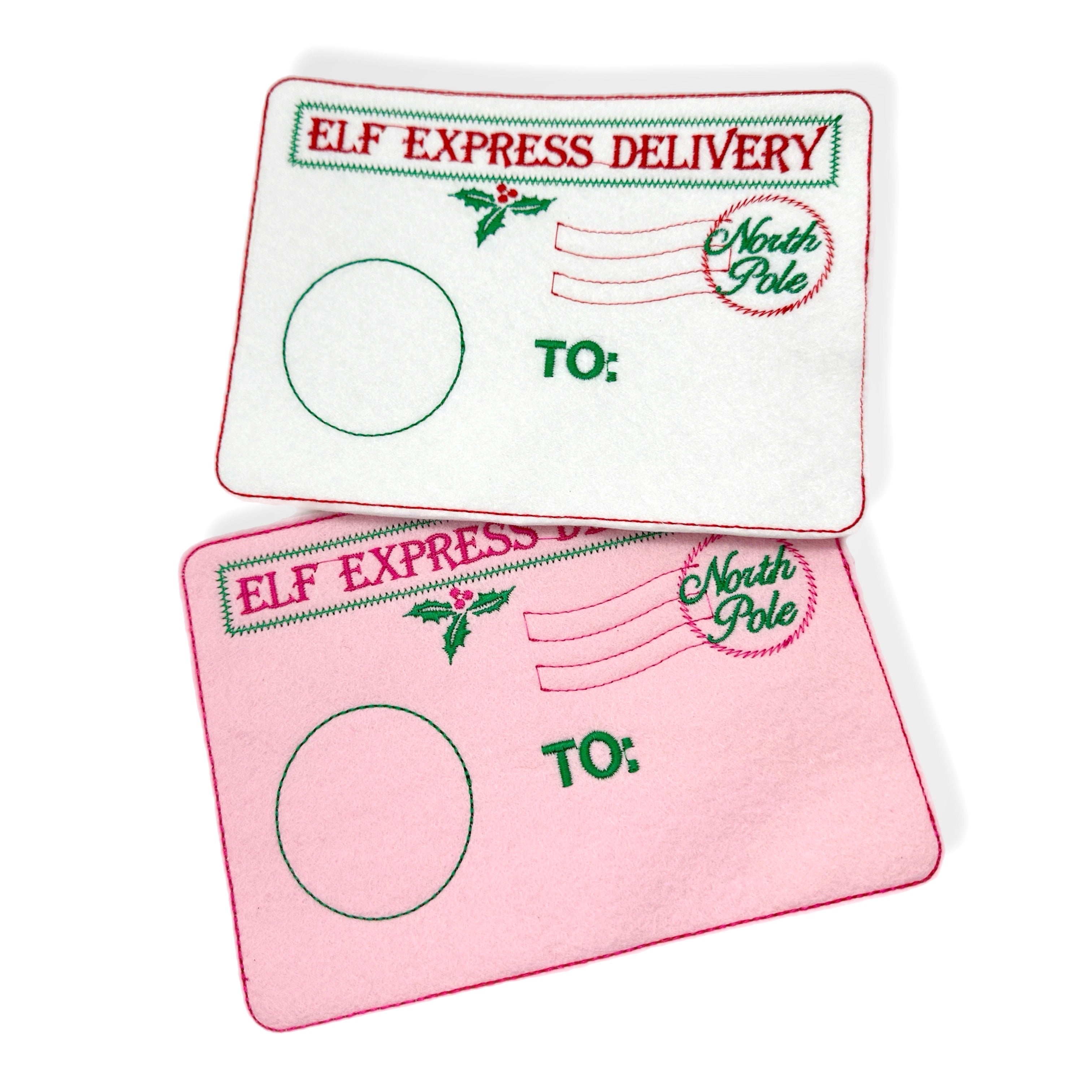Elf Arrival or Return Embroidered Letter Envelopes
