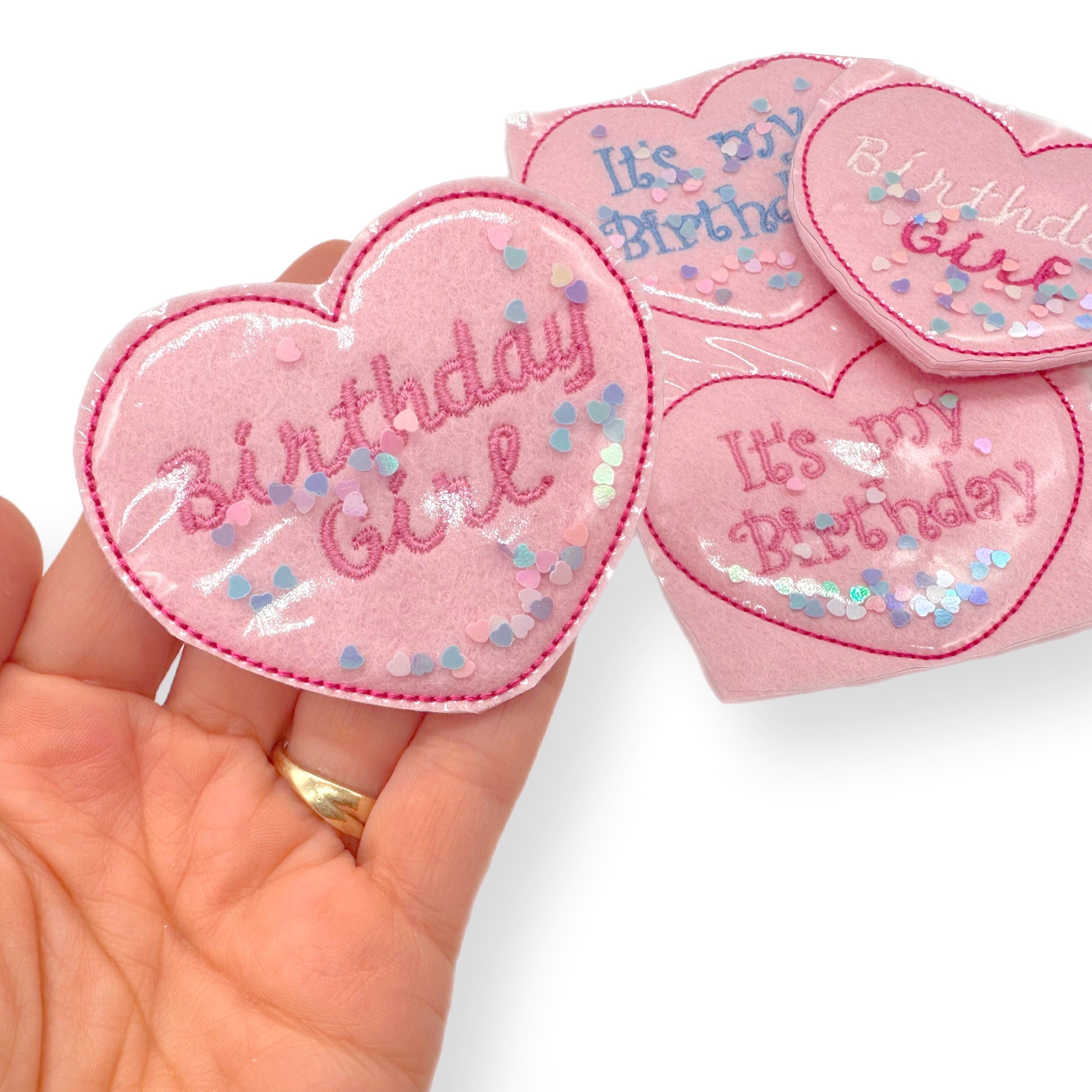 Our beautiful Embroidered birthday badges are an exclusive and unique design to EH as they are made to match perfectly with our birthday badge template and die cutters. Badges come uncut and all you need is a sharp pair of scissors to carefully cut around the outside of the embroidery and then you can just attach your badge to your badge template using hot glue.
