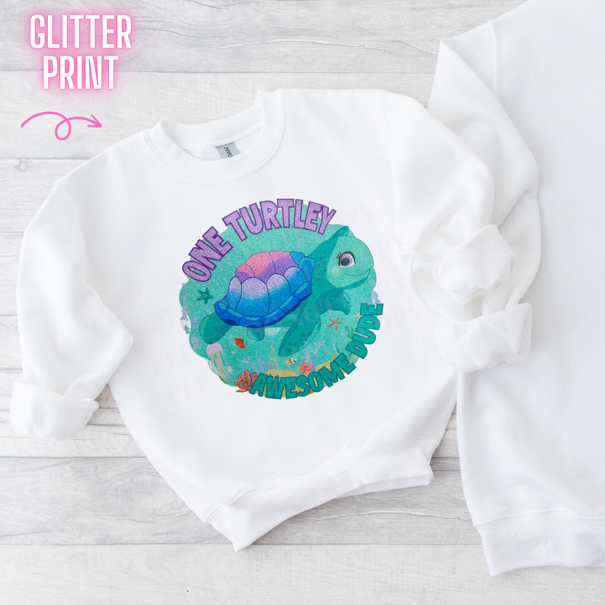 One Turtally Awesome Dude Full Colour Glitter Iron On Transfers