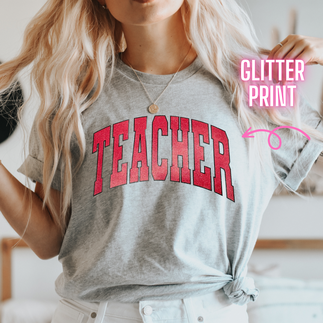 Teacher Varsity Style Full Colour Glitter Iron On Transfers