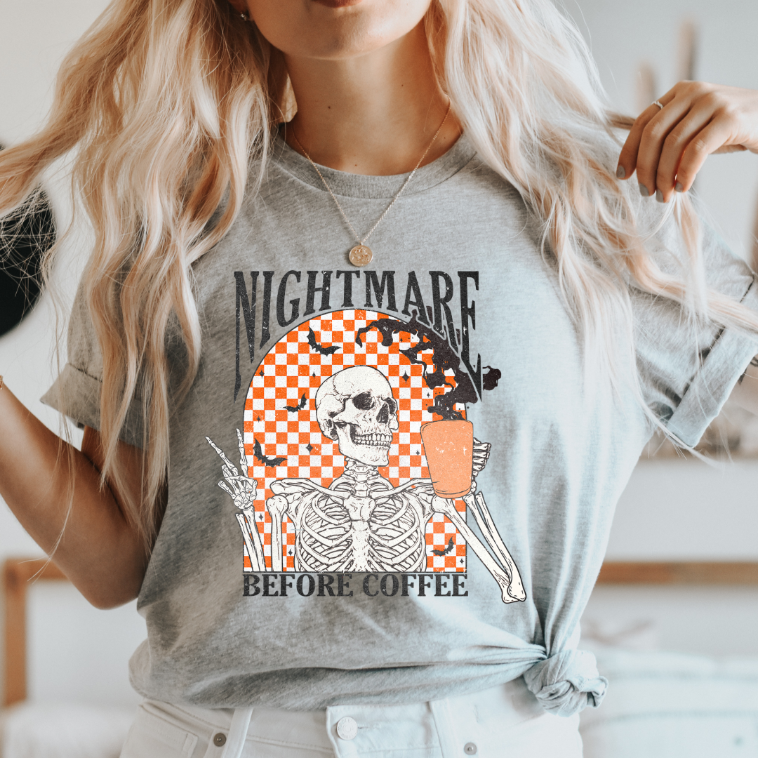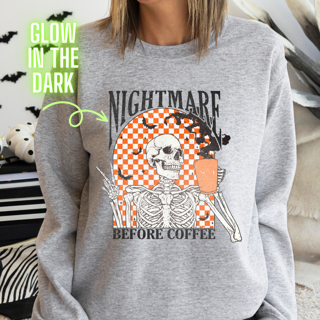 Nightmare before Coffee Glow in the Dark Full Colour Iron on T Shirt Transfers