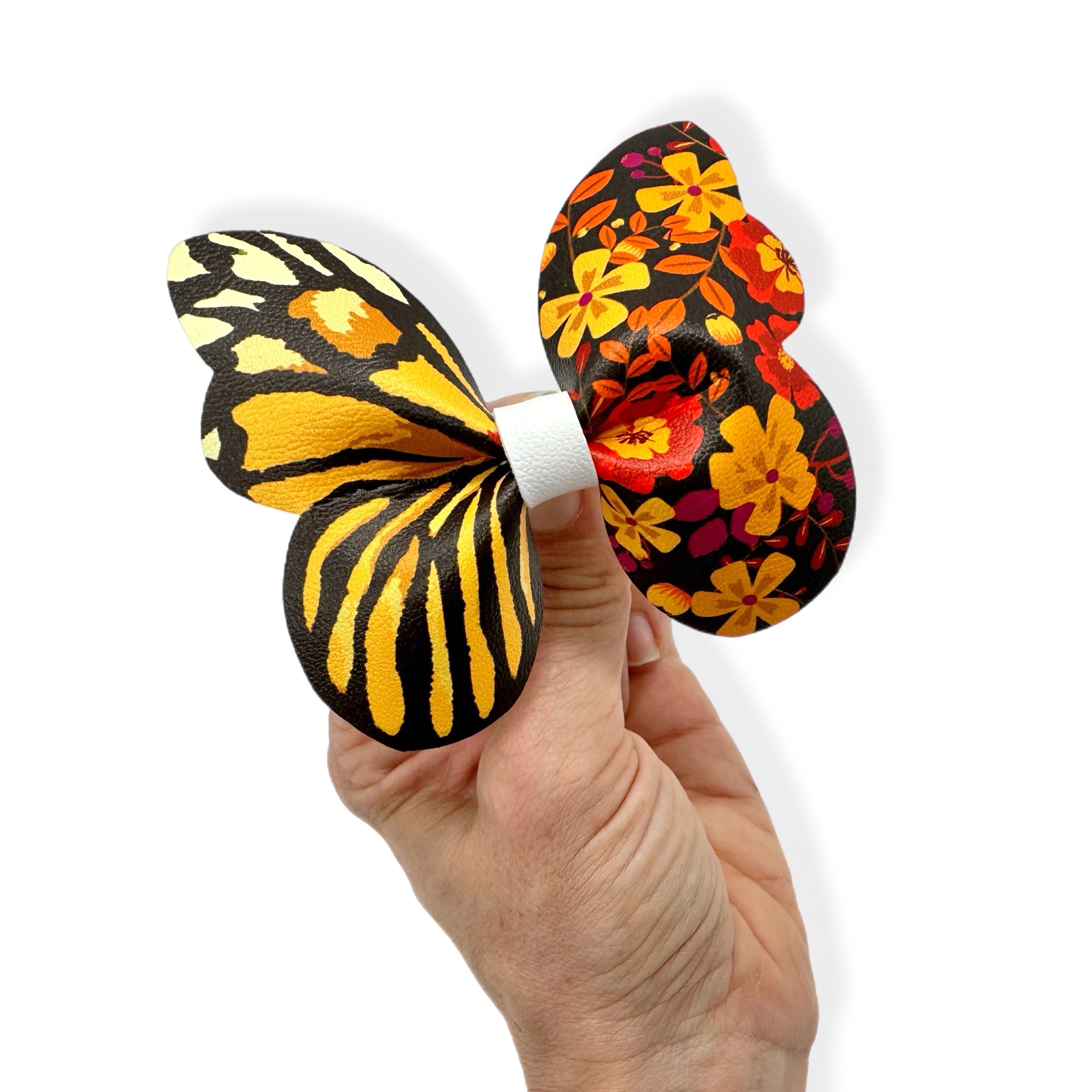 Autumnal Floral Butterfly Pinch Bows DIY Cut Out Faux Leather Fabric Sheets