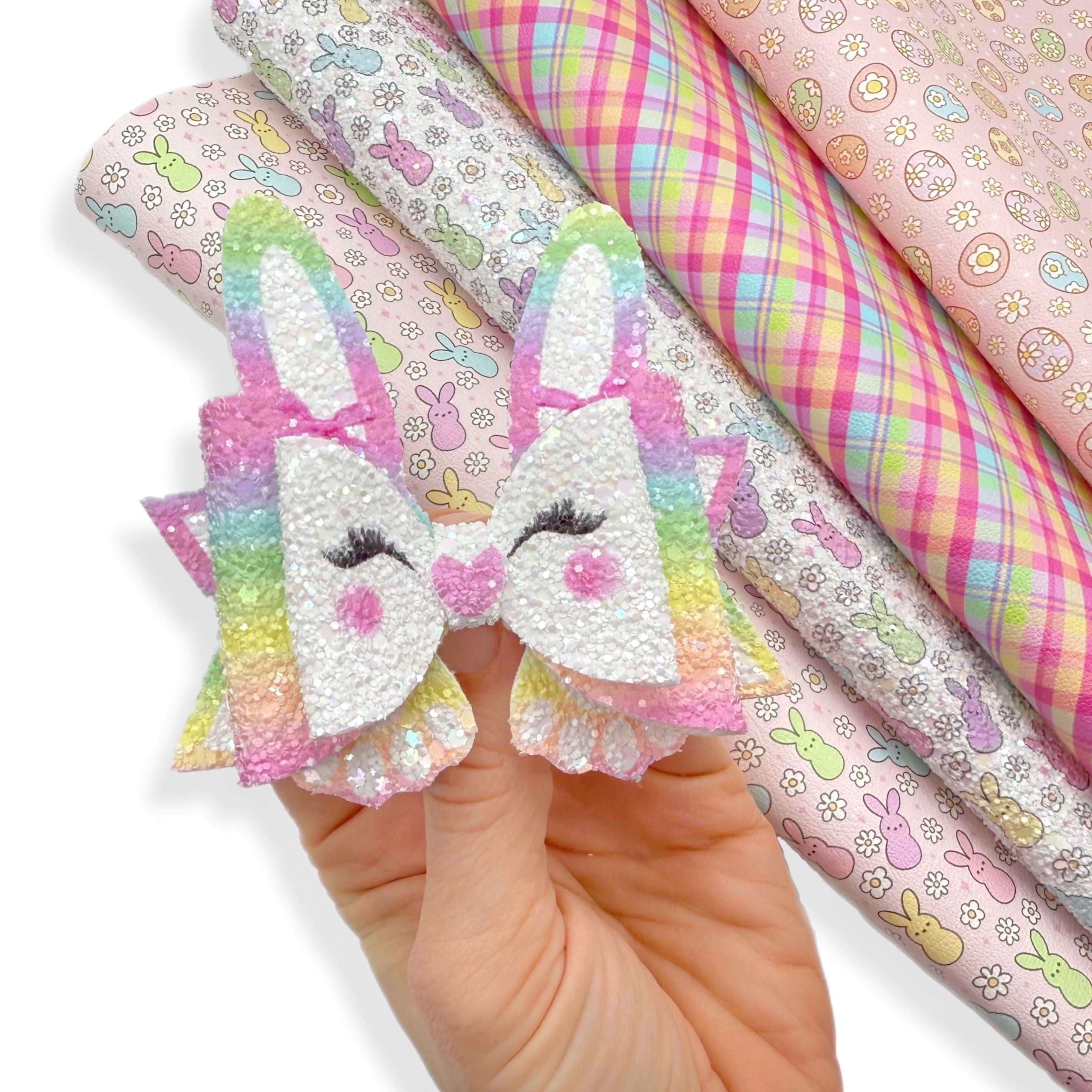 BETSY BUNNY PASTEL RAINBOW DIY CUTOUT CHUNKY GLITTER HAIR BOW LOOPS