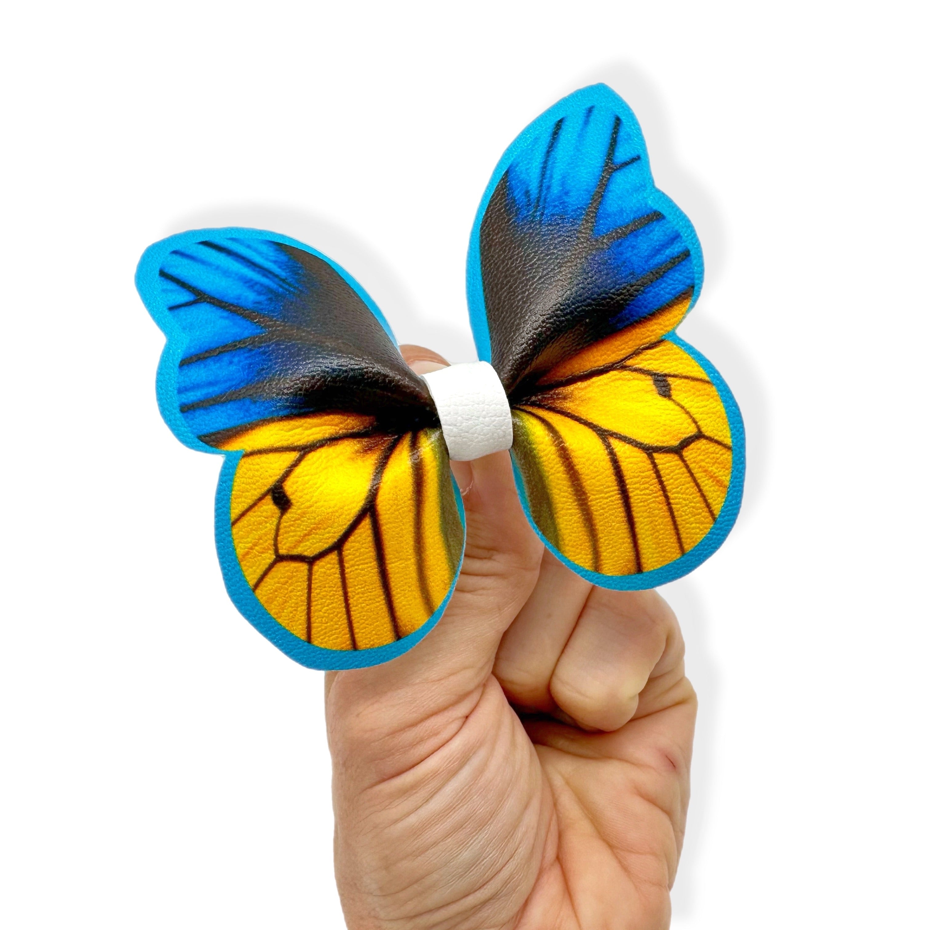 Blue & Yellow Daze Butterfly Pinch Bows DIY Cut Out Faux Leather Fabric Sheets