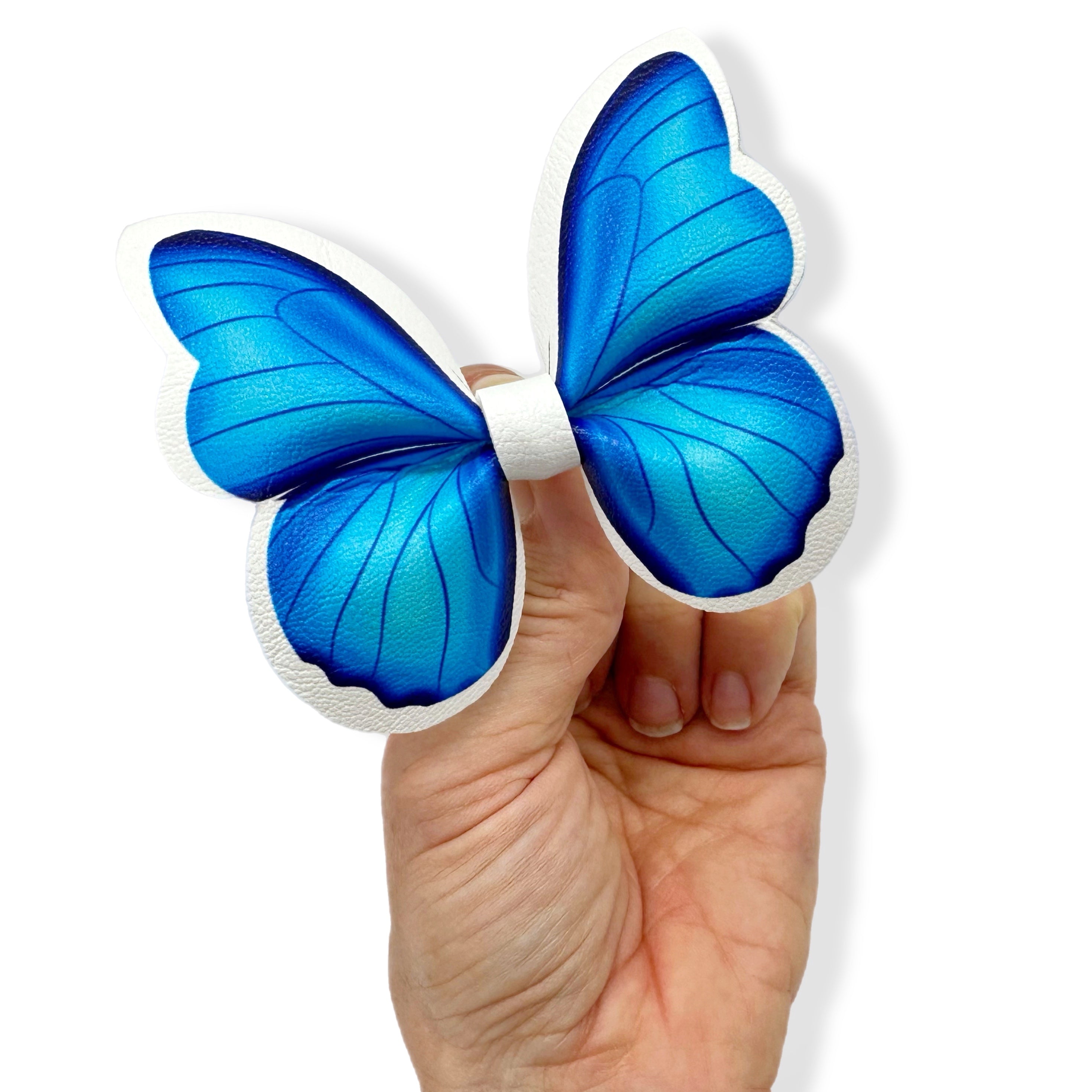 Blue Morpho Butterfly Pinch Bows DIY Cut Out Faux Leather Fabric Sheets