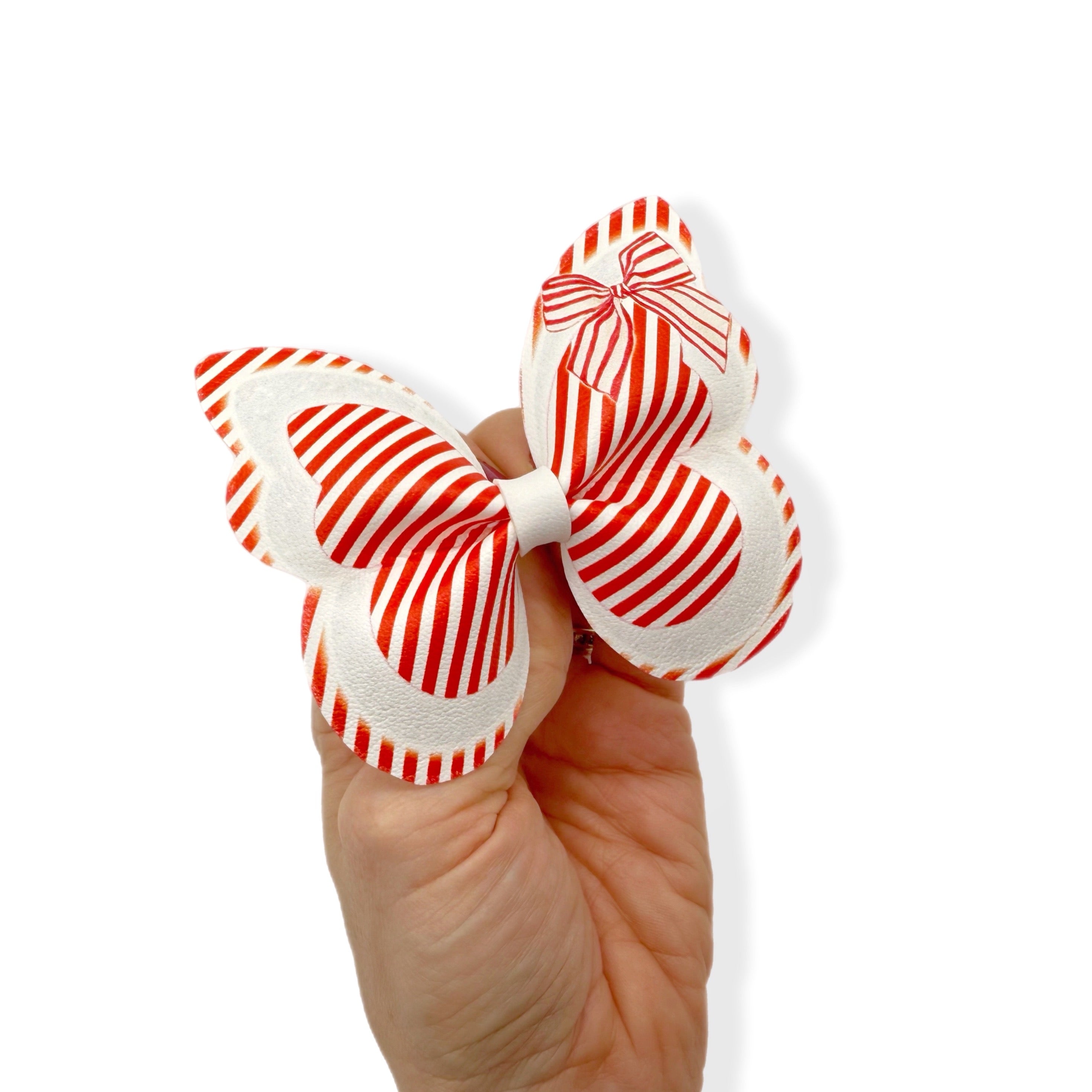 Candy Cane Butterfly Pinch Bows - DIY Cut Out Faux Leather Fabric Sheets