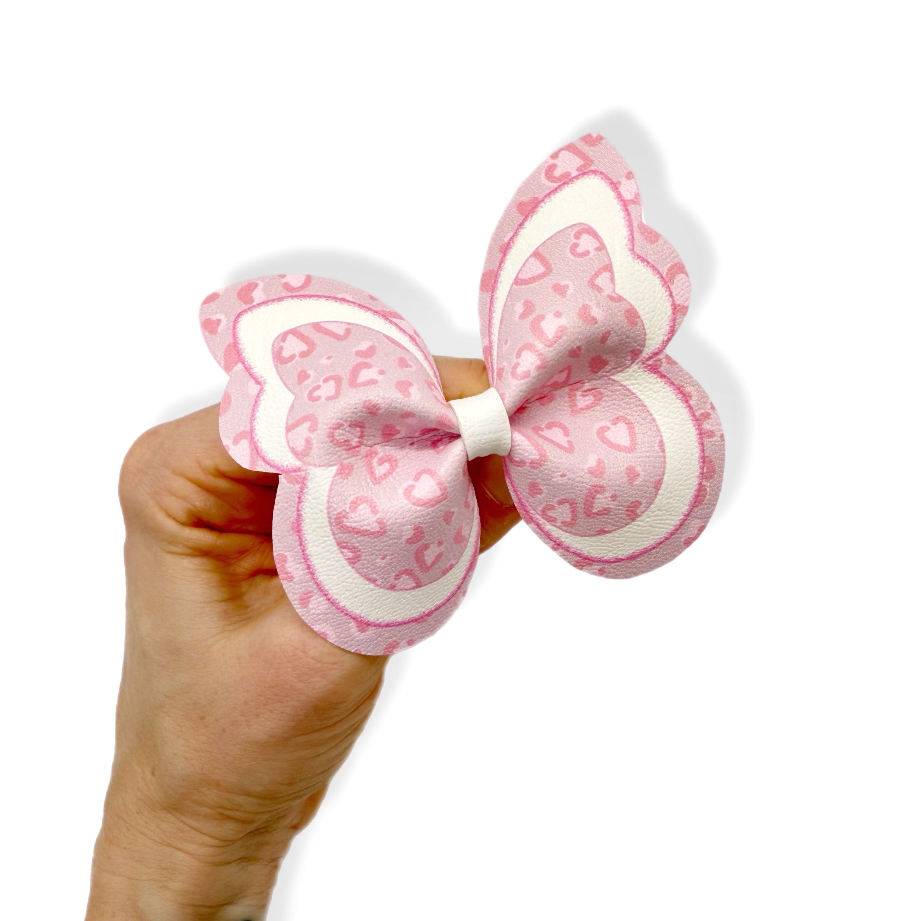 DUSKY PINK LEOPARD BUTTERFLY PINCH BOWS - DIY CUT OUT FAUX LEATHER FABRIC SHEETS