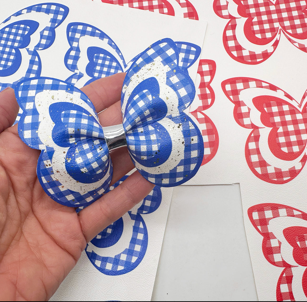 Gingham Butterfly Pinch Bows DIY Cut Out Faux Leather Fabric Sheets