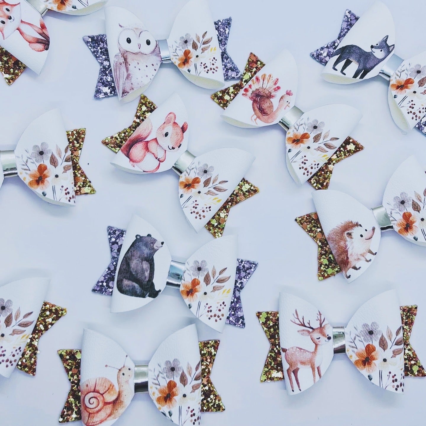 Mini Woodland Friends -Set of 12 Mini Bows Faux Leather Craft Cutout Sheets