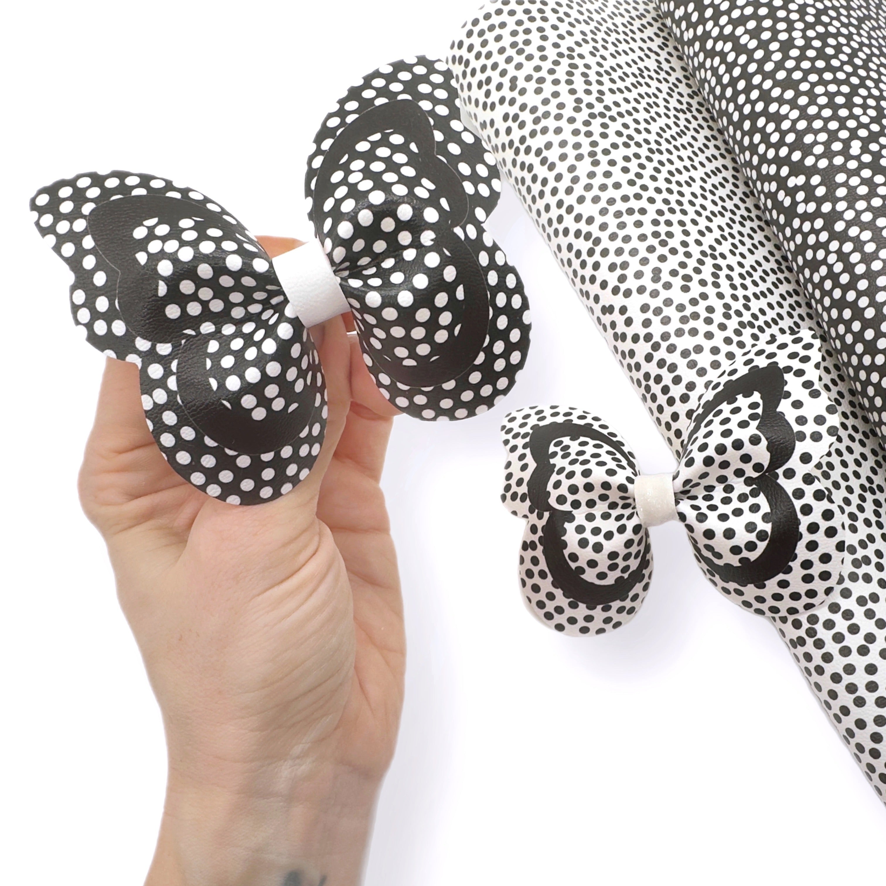 Mono Polka Dot Butterfly Pinch Bows DIY Cut Out Faux Leather Fabric Sheets