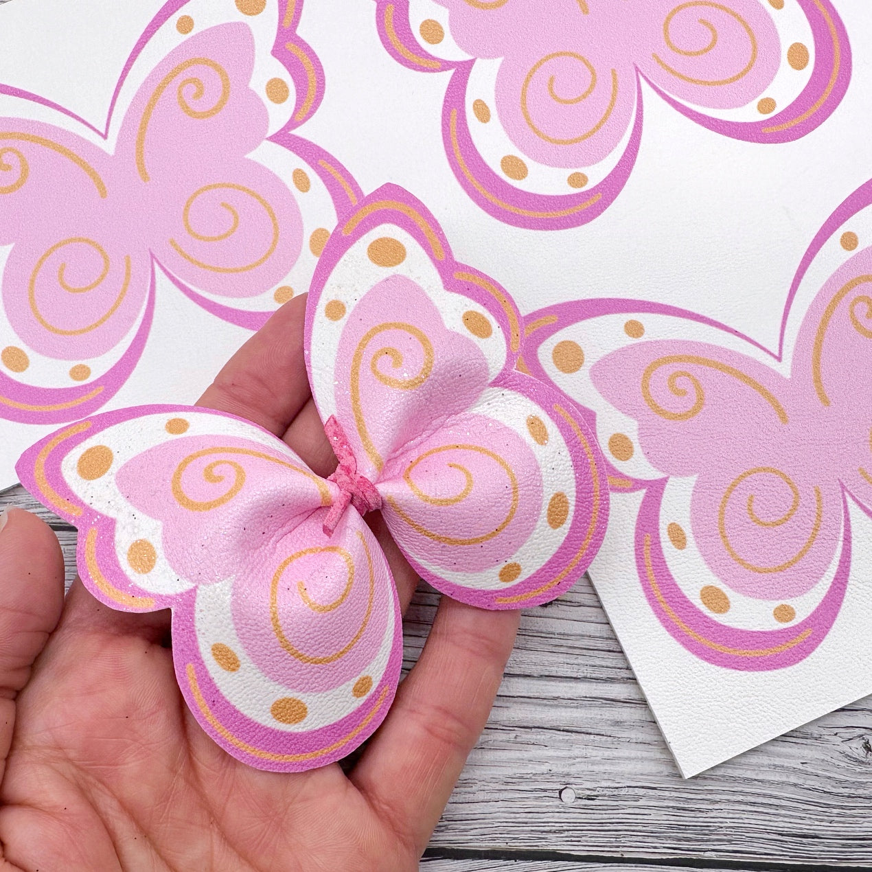 Princess Pink Butterfly DIY Pinch Bow DIY Cutout Faux Leather Fabric Sheet