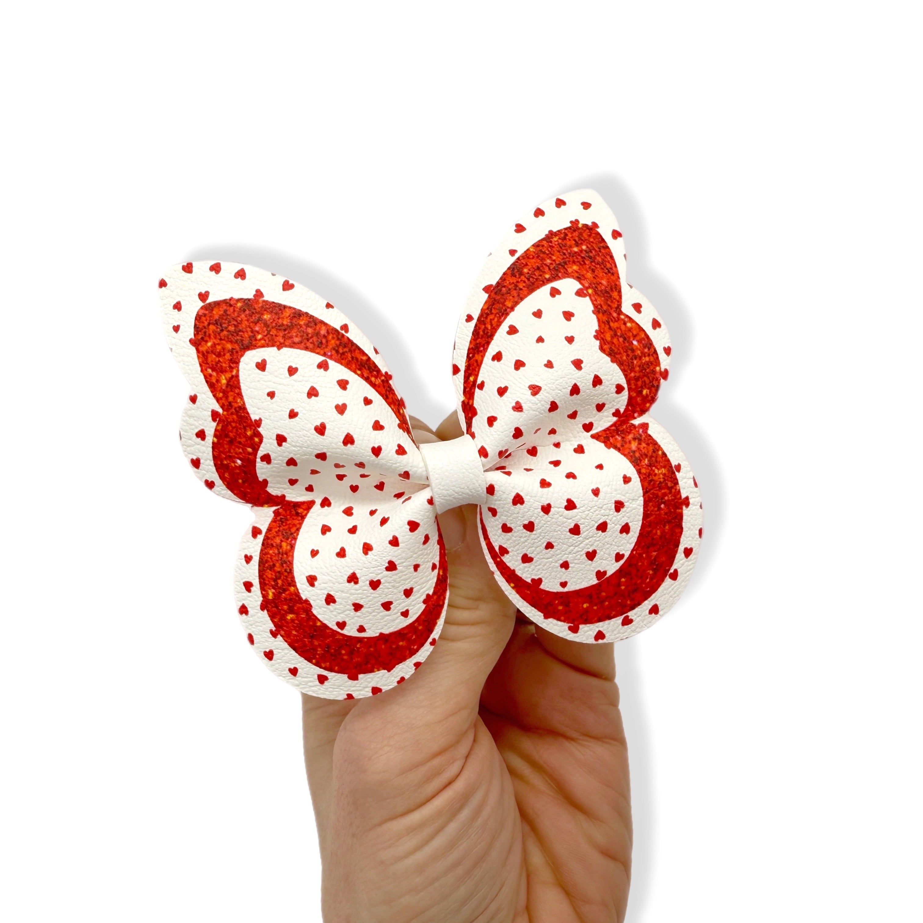 QUEEN OF HEARTS BUTTERFLY PINCH BOWS - DIY CUT OUT FAUX LEATHER FABRIC SHEETS