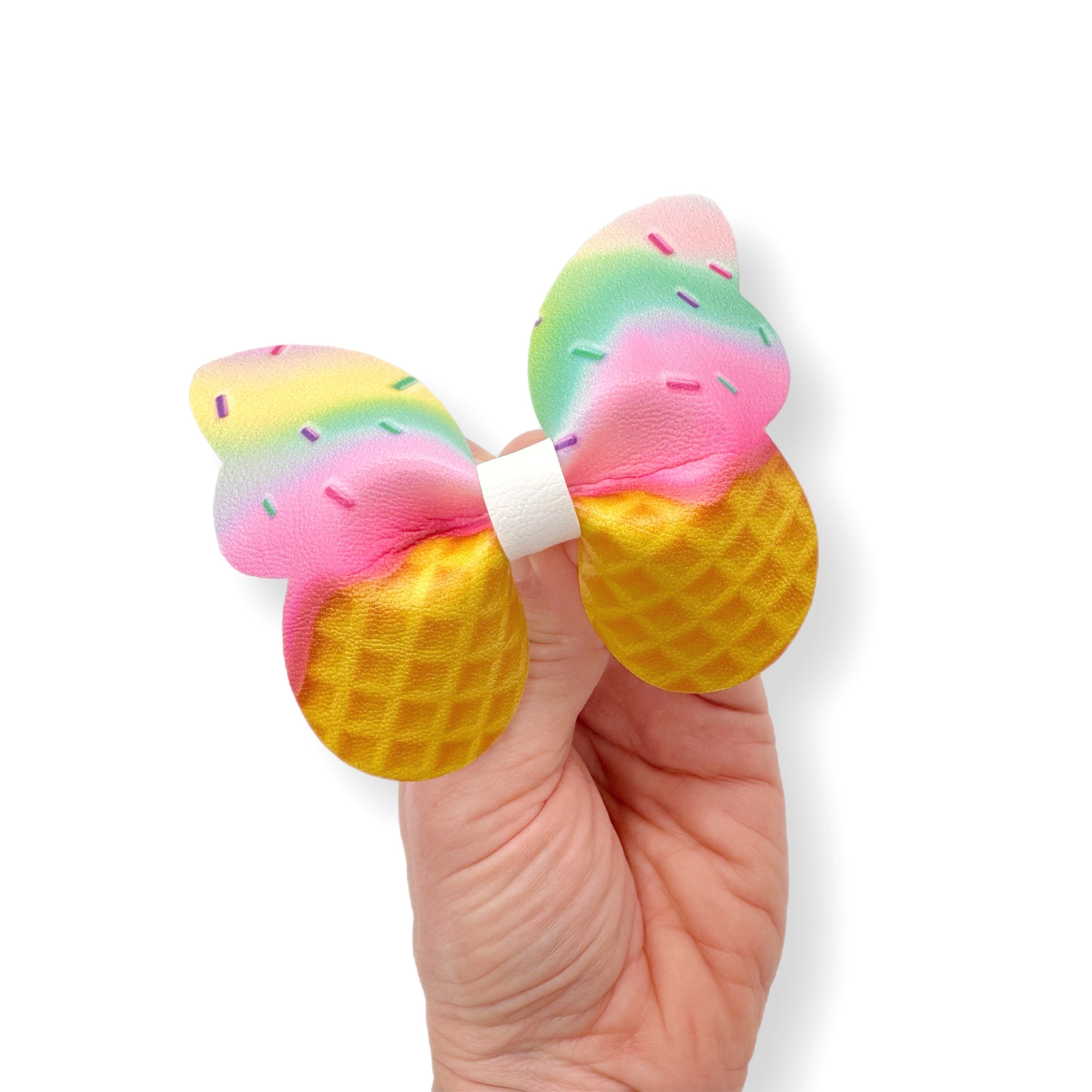 Rainbow Sprinkles Ice Cream Butterfly Pinch Bows DIY Cut Out Faux Leather Fabric Sheets
