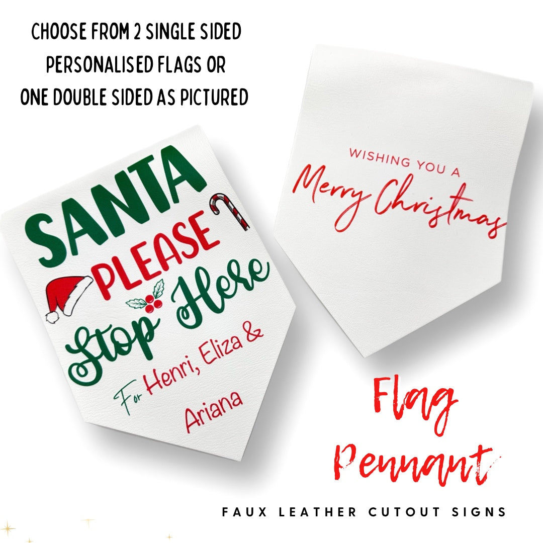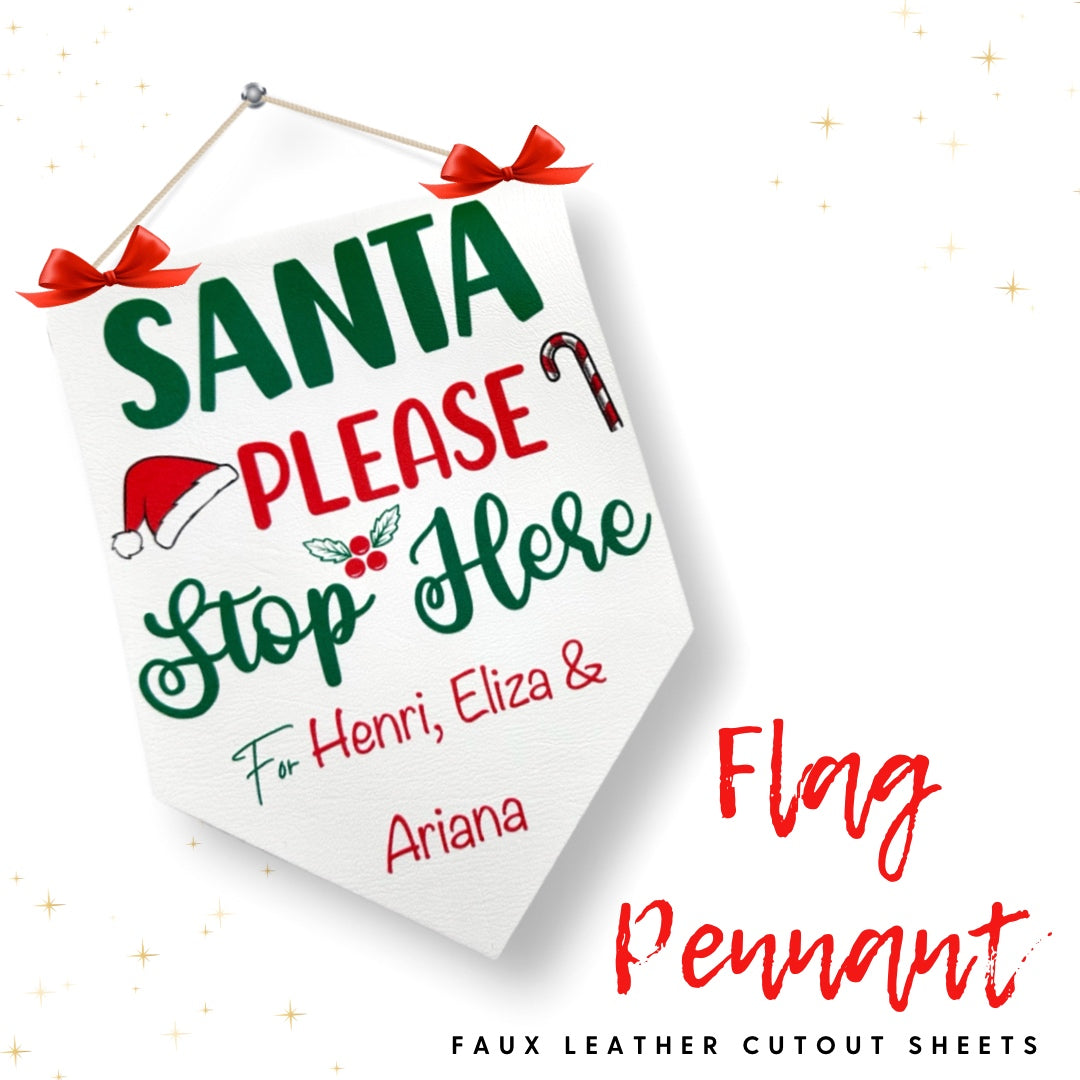 Santa Stop Here Flag Pennant DIY Cutout Faux Leather Signs