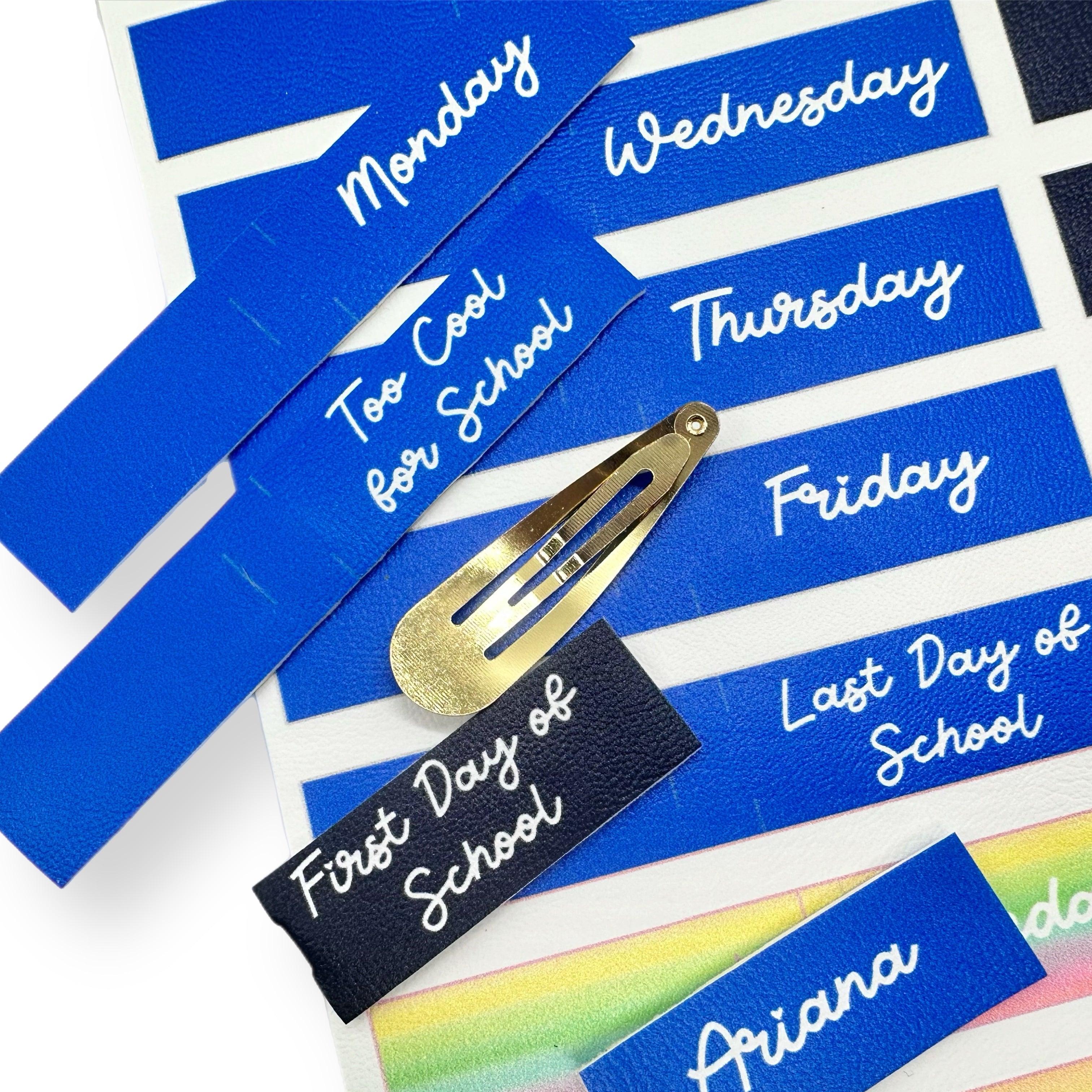 School Block Colour Snap Clips Faux Leather DIY Cut Out Fabric Sheet Kit- Set of 5