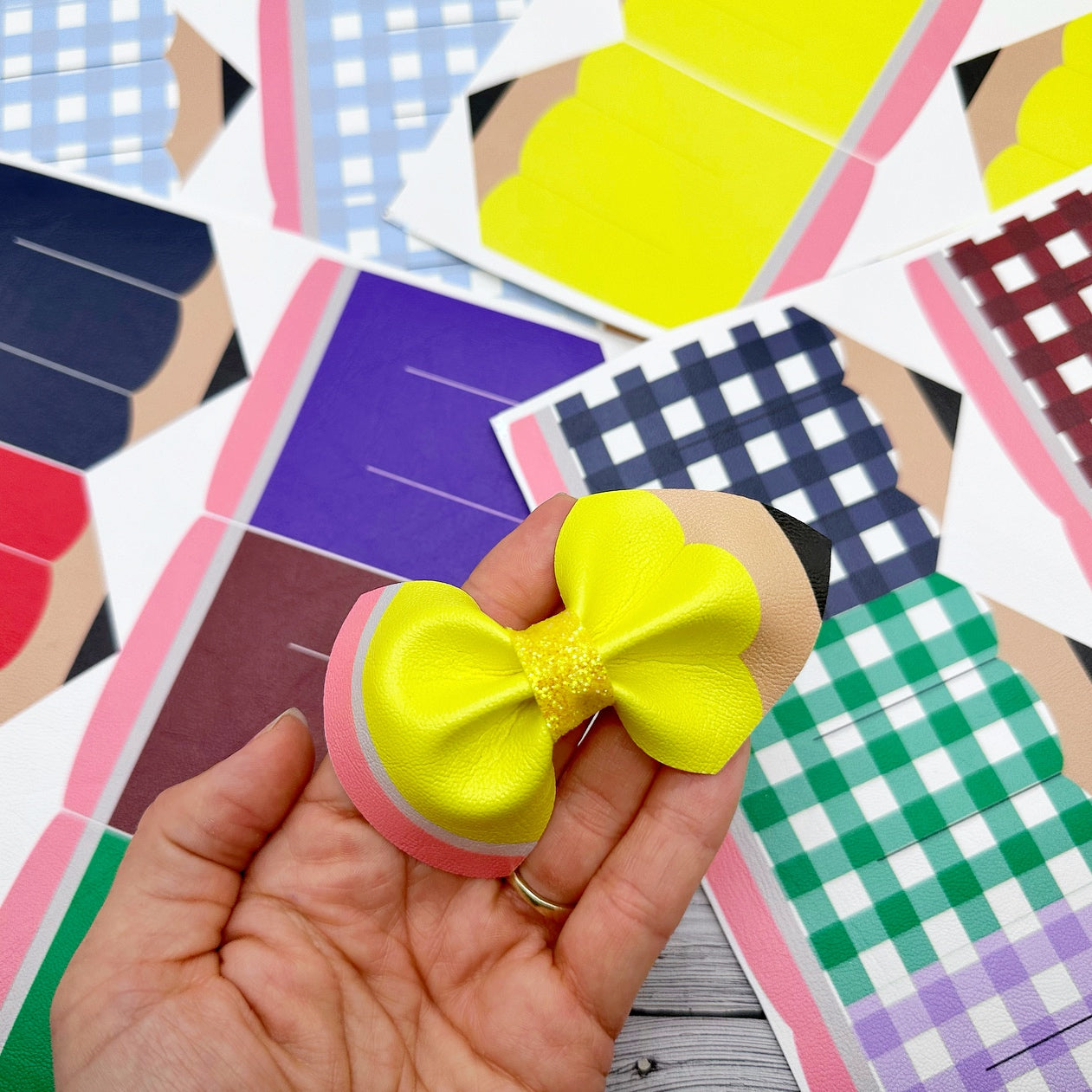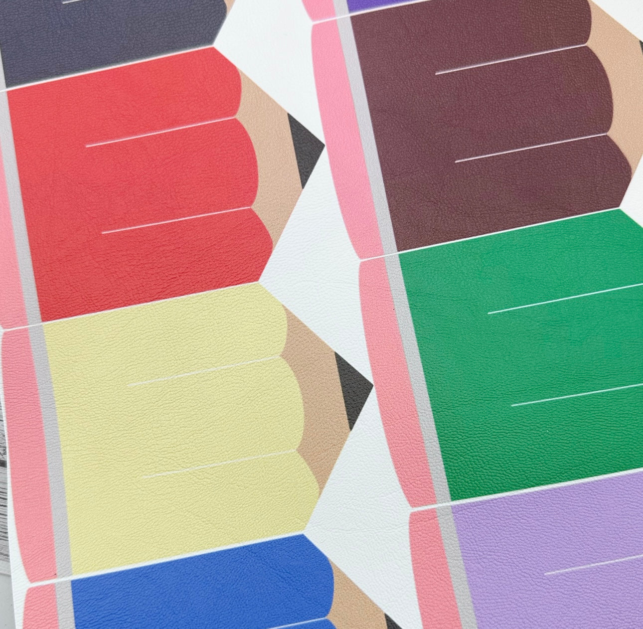 School Coloured Pencil Pinch Bow DIY Cutout Faux Leather Fabric Sheet