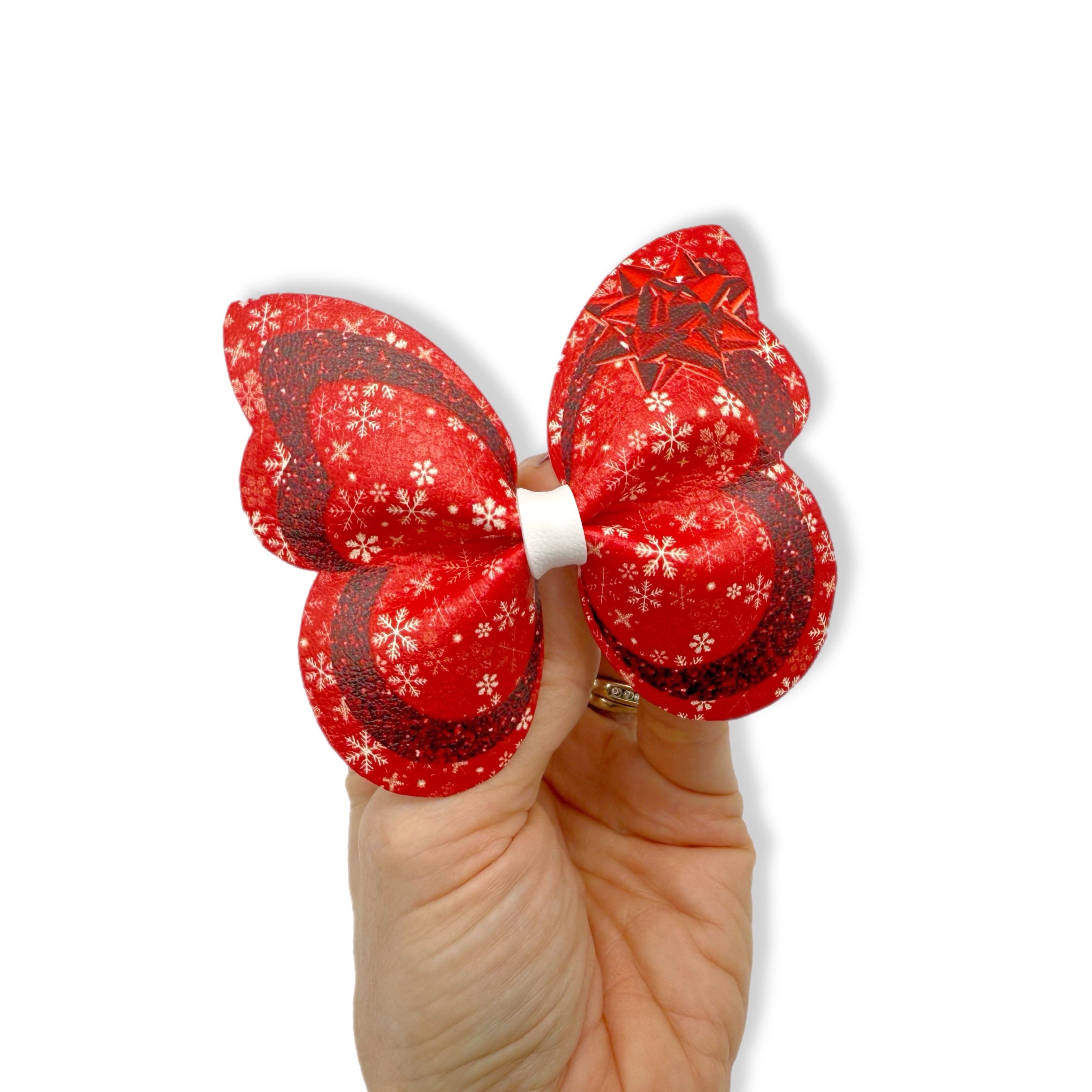 Snowy Butterfly Pinch Bows - DIY Cut Out Faux Leather Fabric Sheets