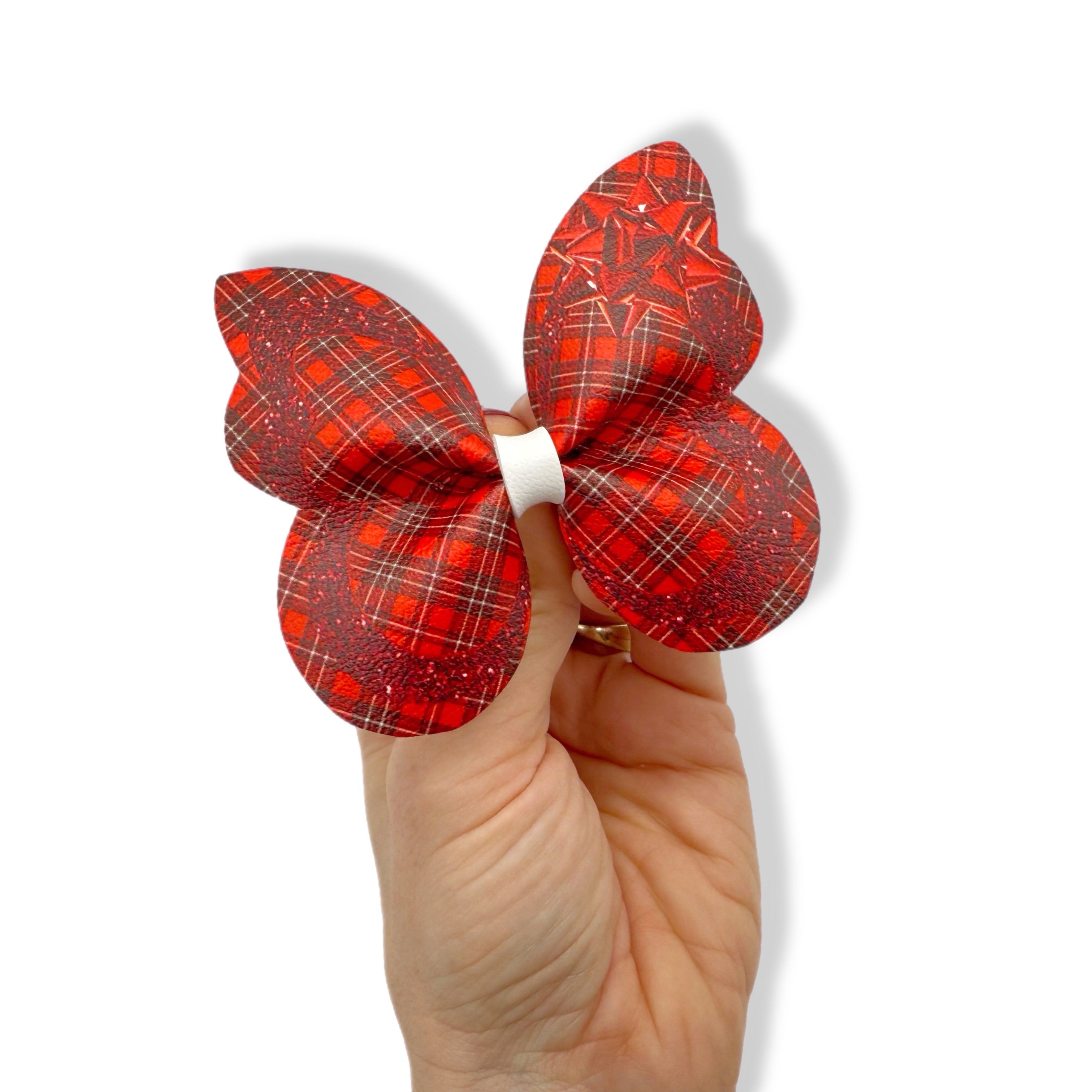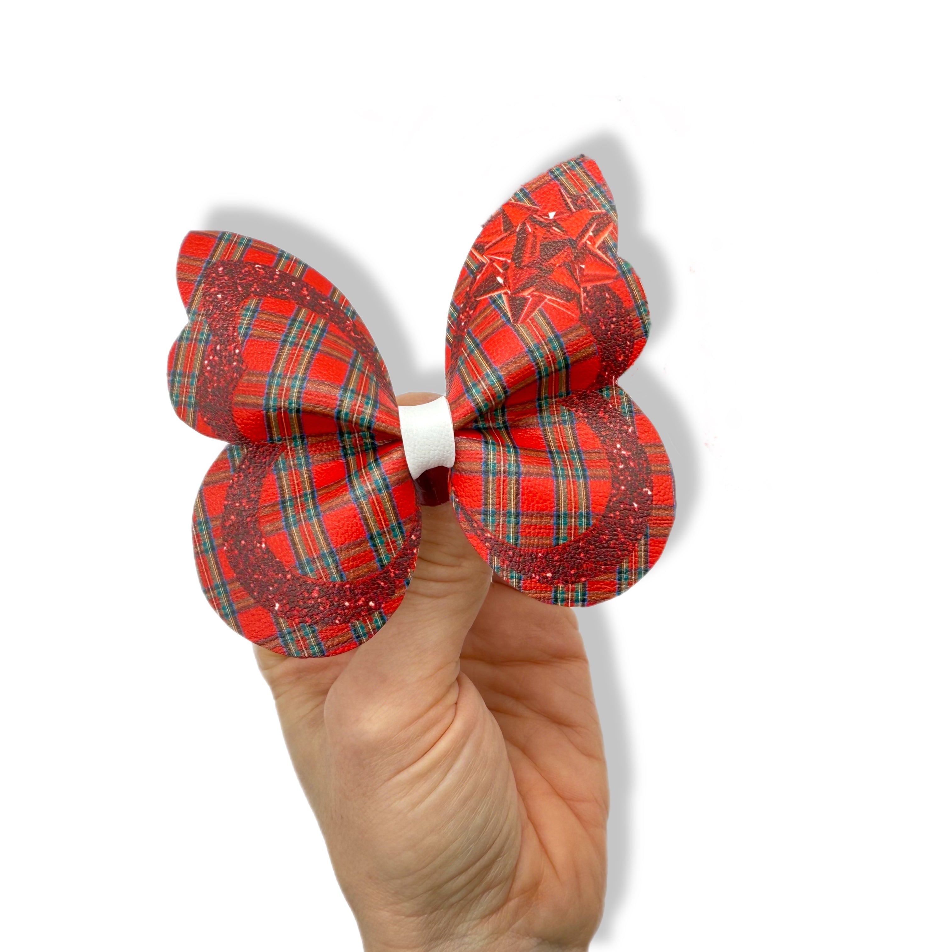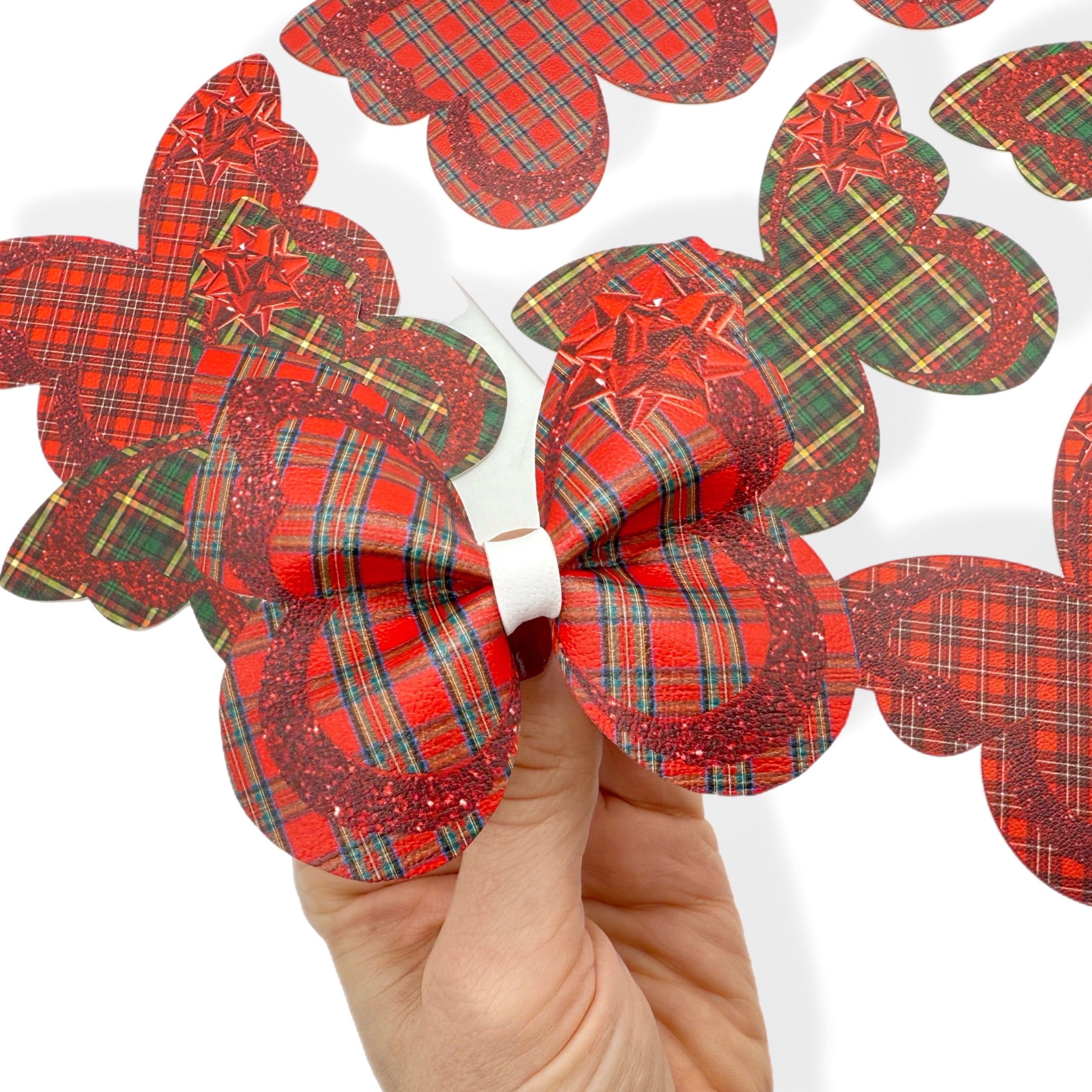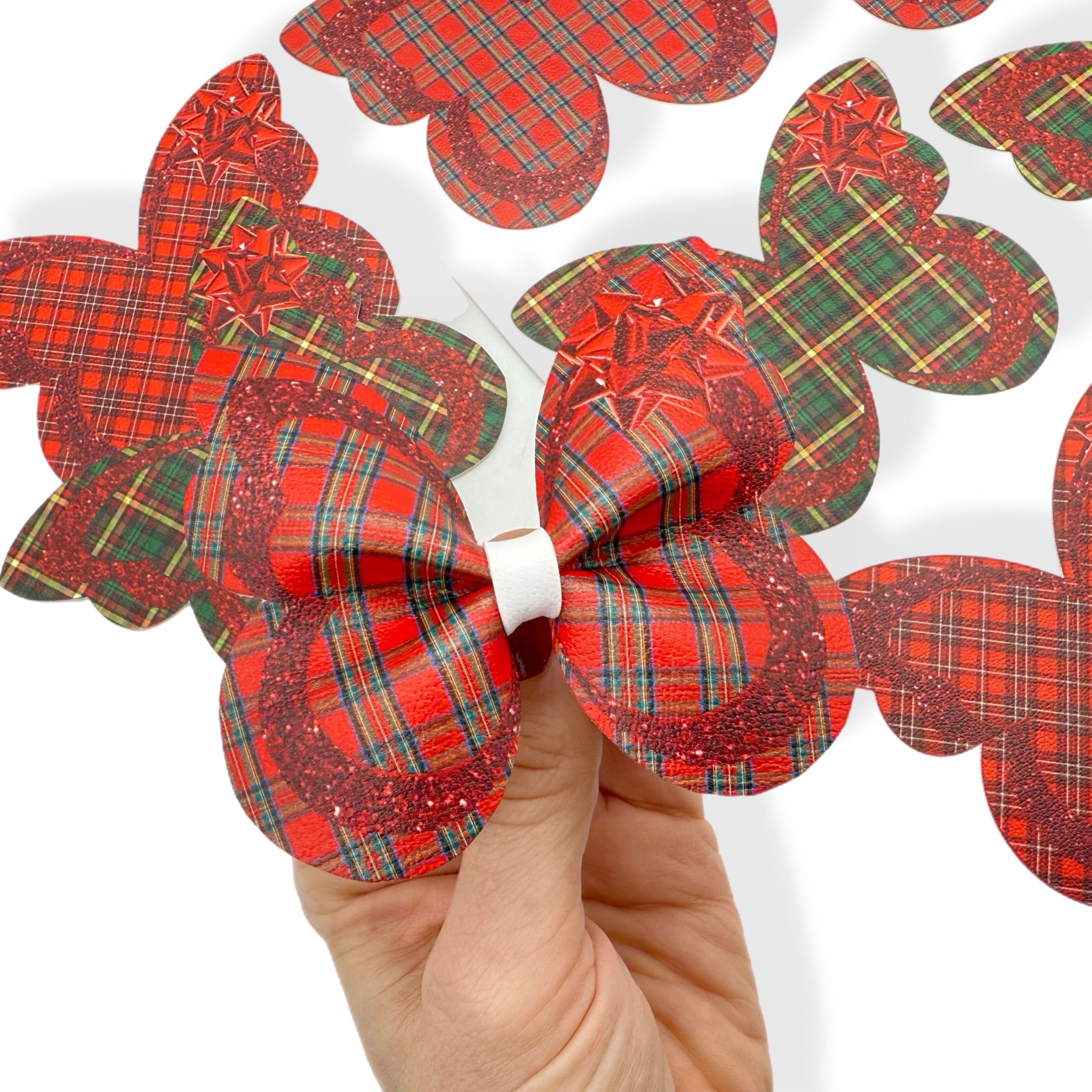 Tartan & Red Party Glitter Butterfly Pinch Bows - DIY Cut Out Faux Leather Fabric Sheets