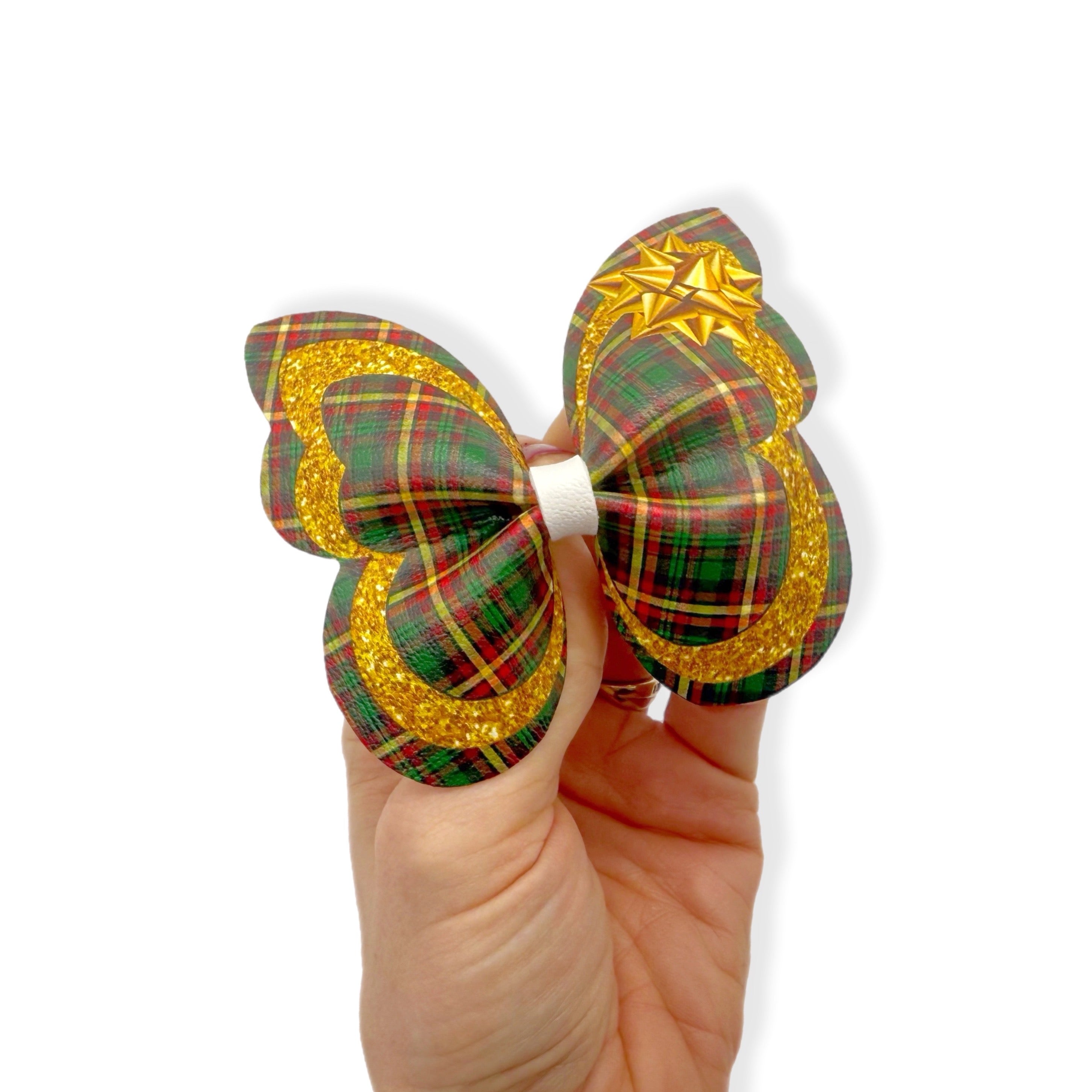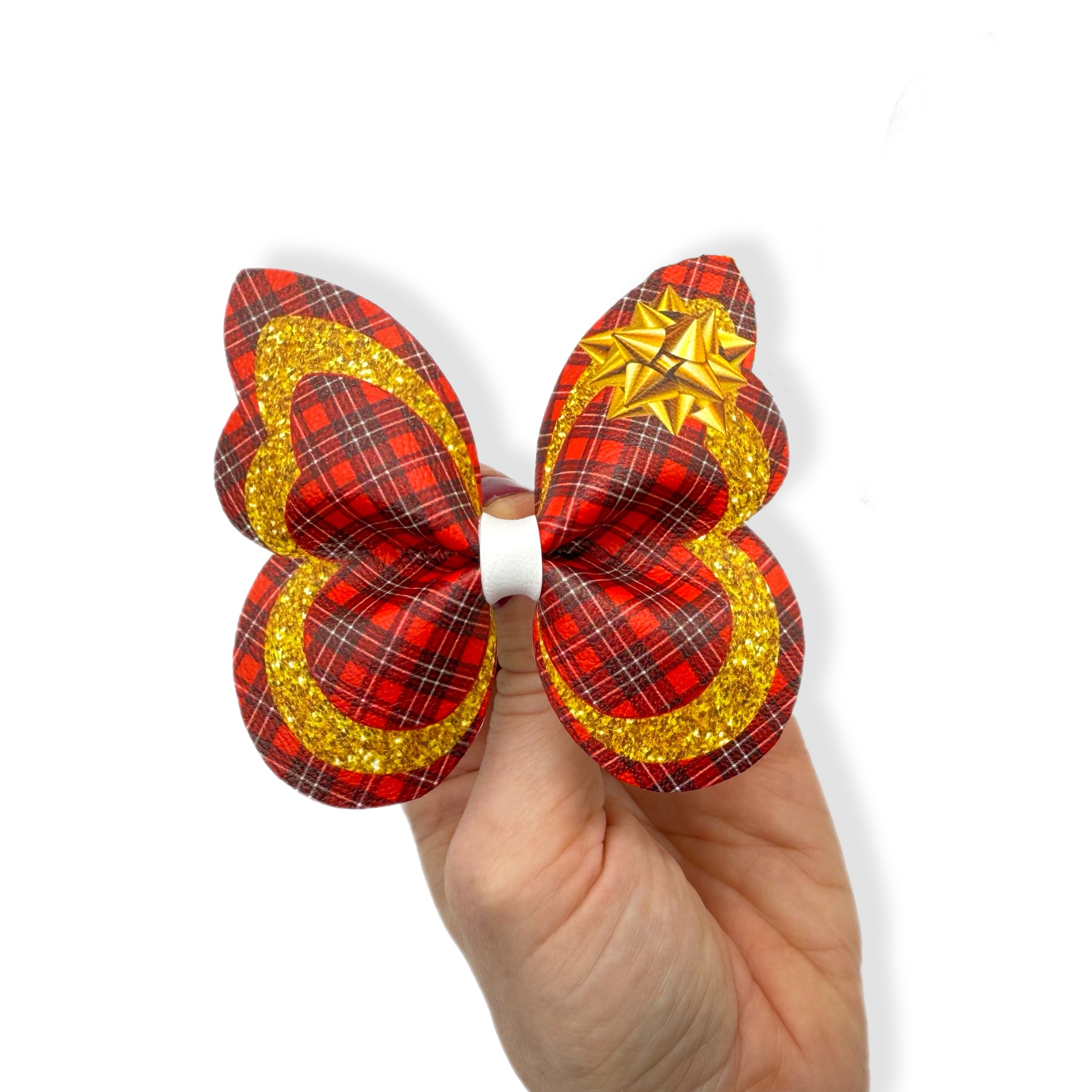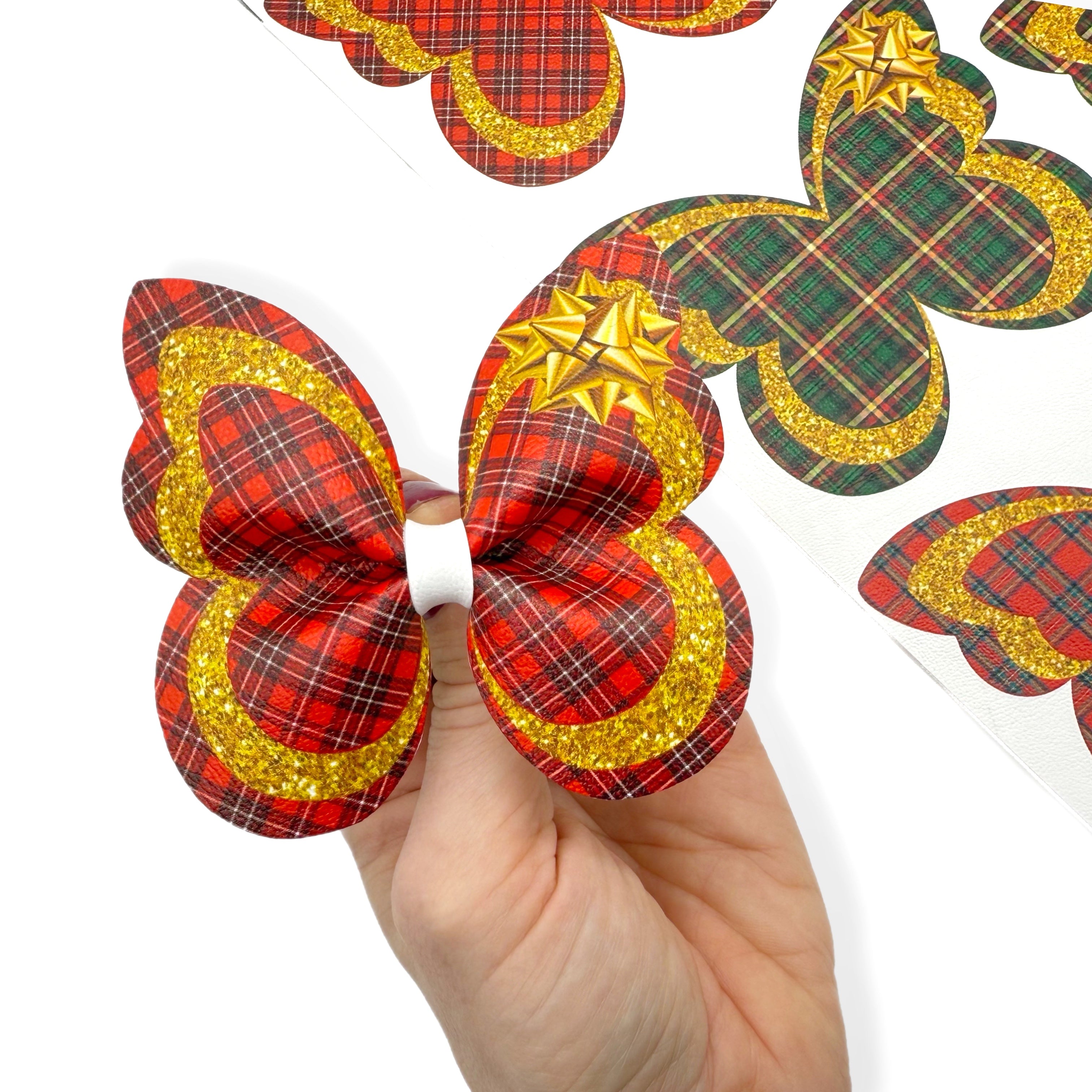 Tartan & Gold Party Glitter Butterfly Pinch Bows - DIY Cut Out Faux Leather Fabric Sheets