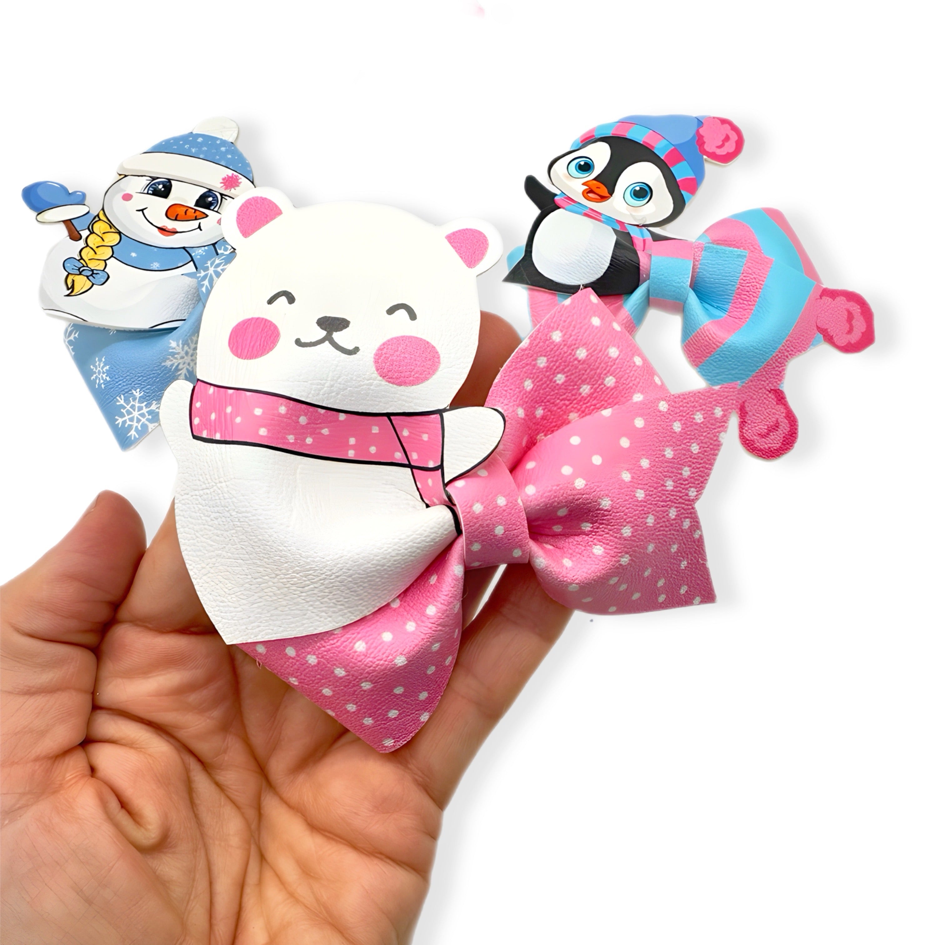Winter Garnet Bows Faux Leather DIY Hair Bow Loops & Craft Cutout Strips